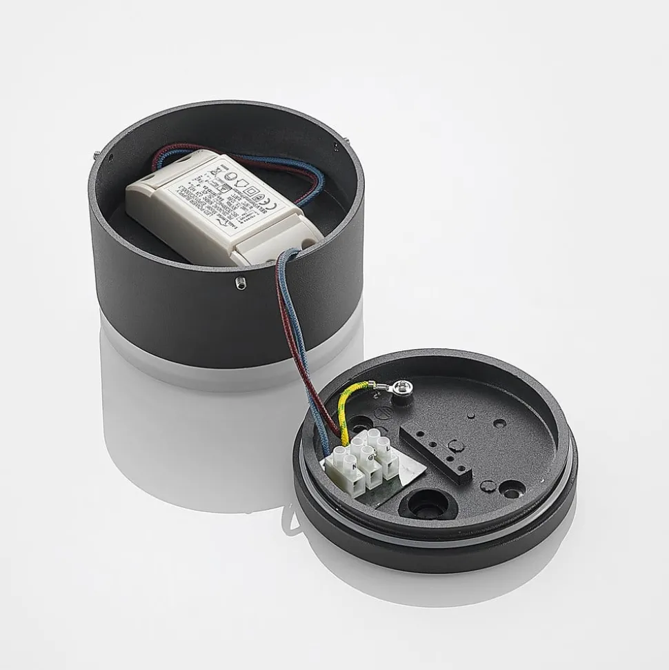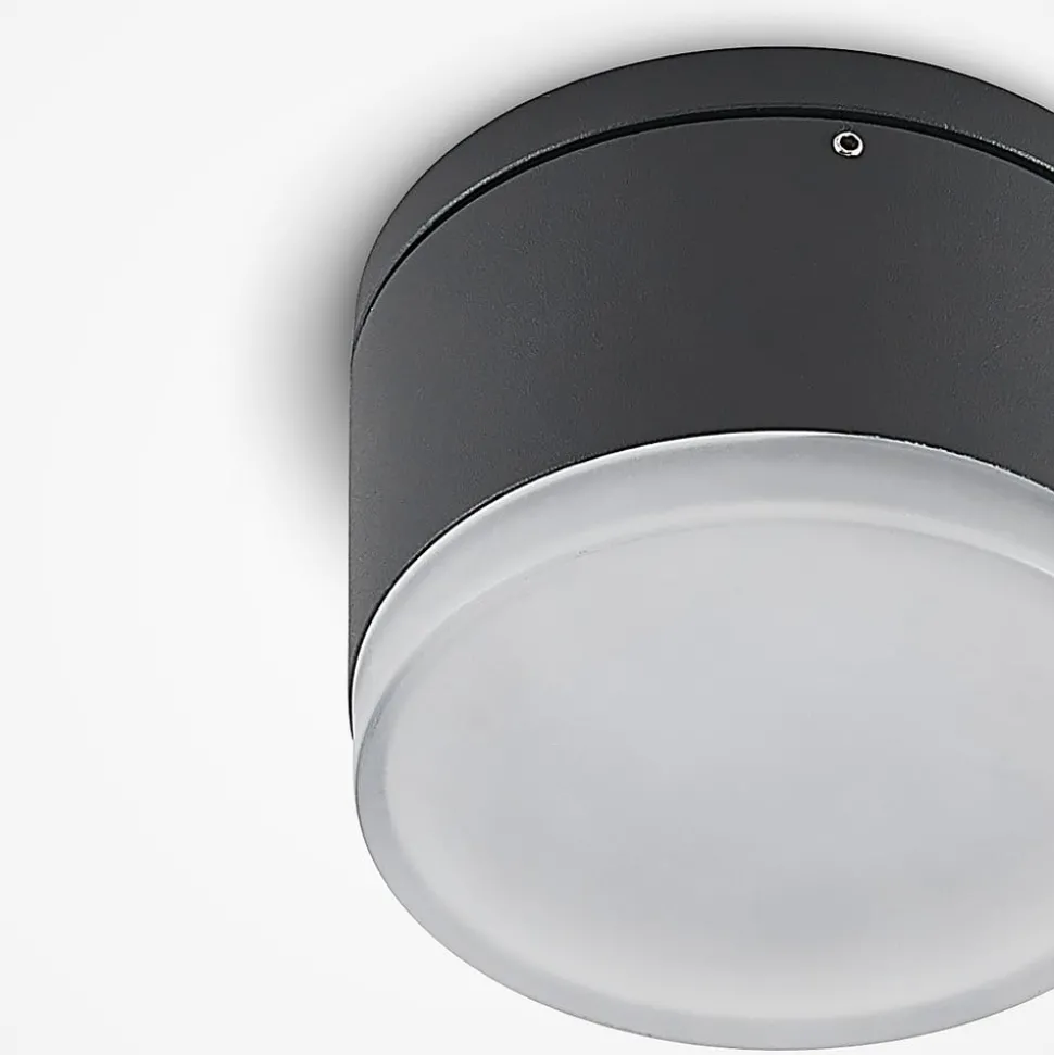 Cilindrische LED Buiten plafondlamp Mathea in Zwart met Witte Diffuser