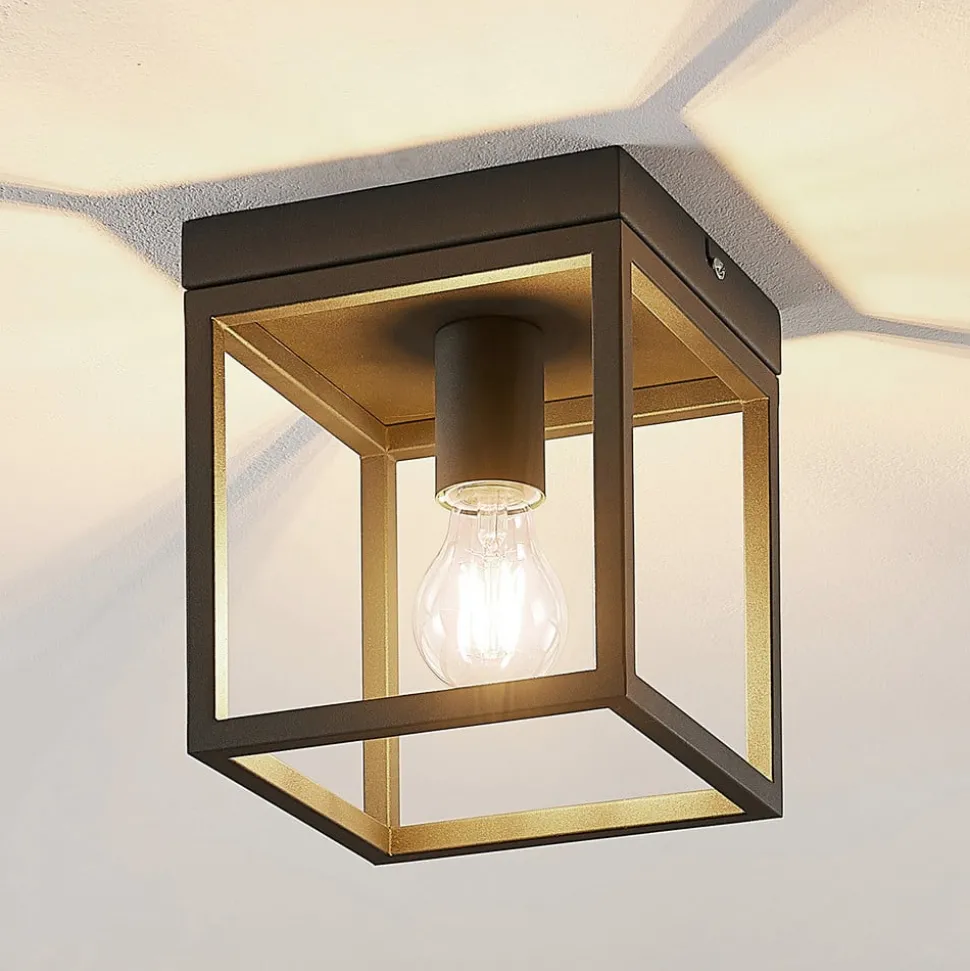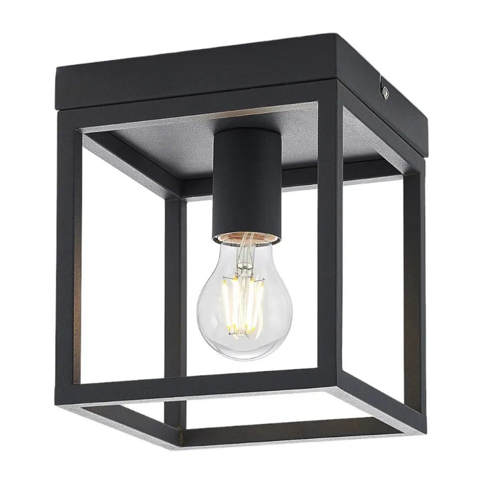 Kubusvormige plafondlamp Meron in kooivorm en met donkergrijze afwerking