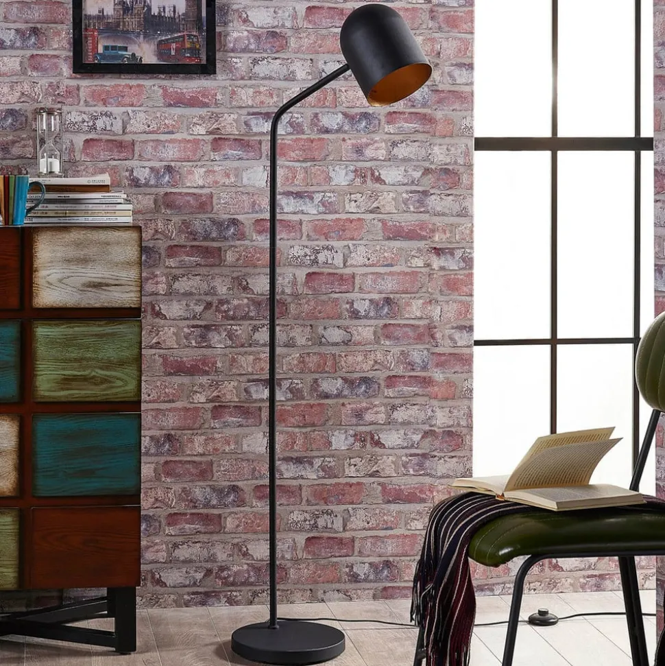 Lindby Morik vloerlamp, 1-lamp, zwart/goud, metaal