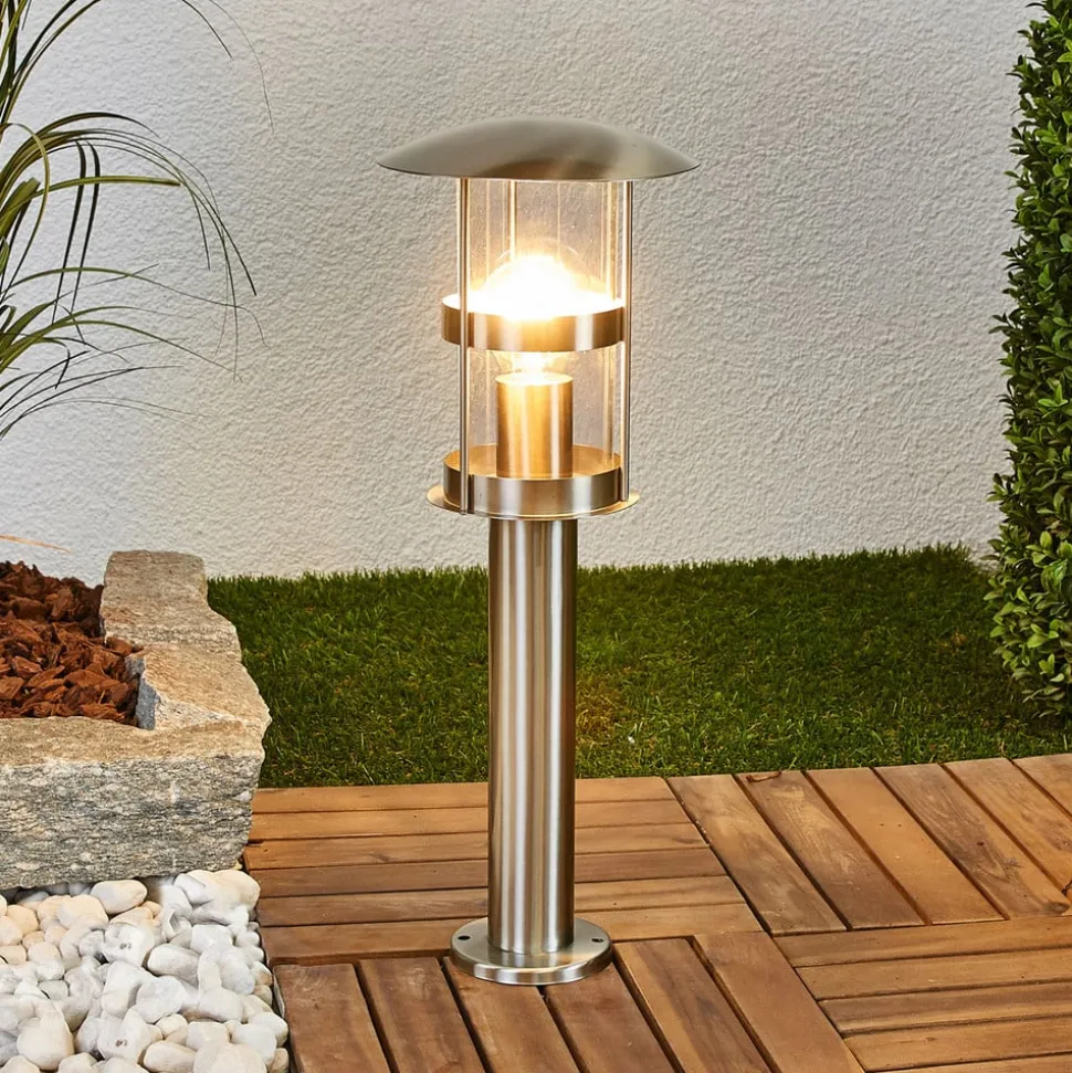 Noemi sokkellamp als praktische verlichting voor buiten Noemi is een sokkellamp die buiten kan worden geïnstalleerd, waarbij je ook een kleine verhoging of een muur kunt gebruiken voor montage. Zowel de buislamp als sommige delen van de kap zijn gemaakt van roestvrij staal en zijn dus goed bestand tegen weersinvloeden omdat ze roestbestendig zijn. Om de lamp te beschermen is een cilinder van polycarbonaat gebruikt, die de volledige helderheid naar buiten laat ontsnappen dankzij het heldere oppervlak.