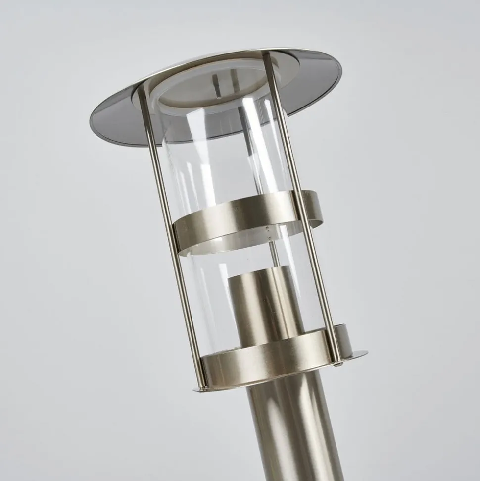 Lindby Noemi sokkellamp, grijs, roestvrij staal, 50 cm, IP44