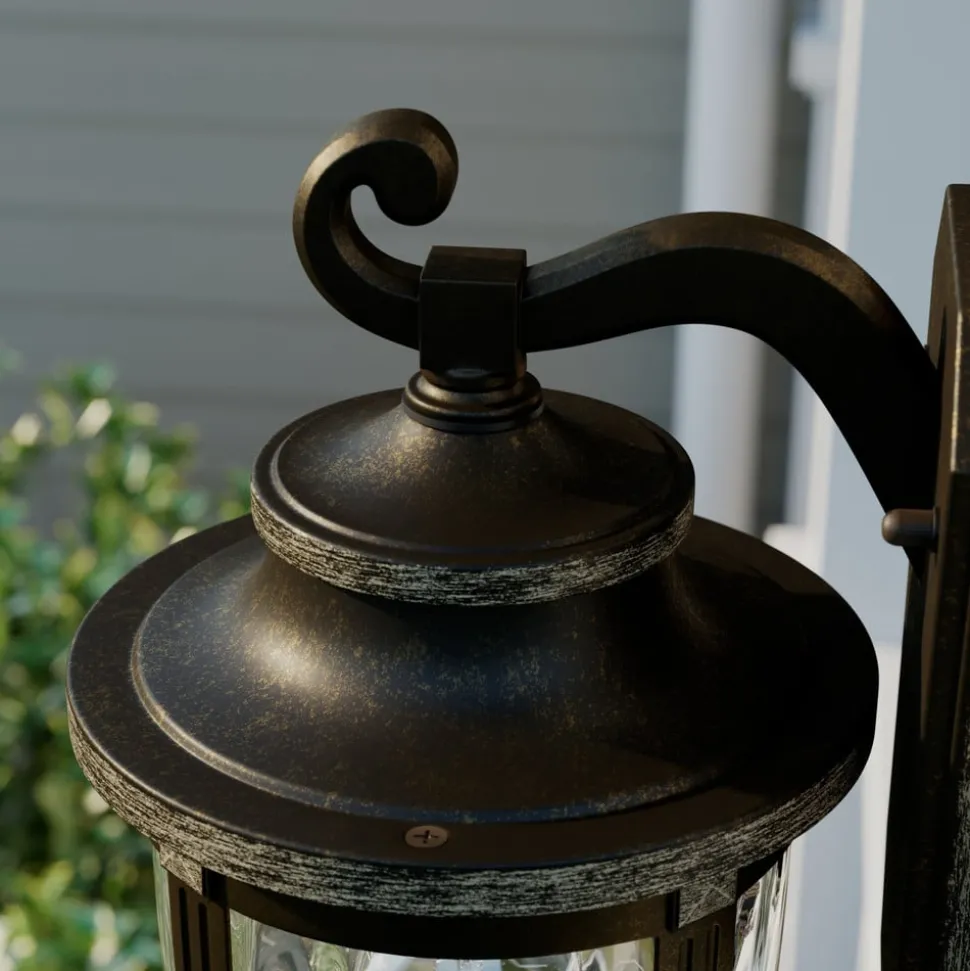 Nostalgische LED buiten wandlamp Philody met antiek bruin metalen frame en structuurglas