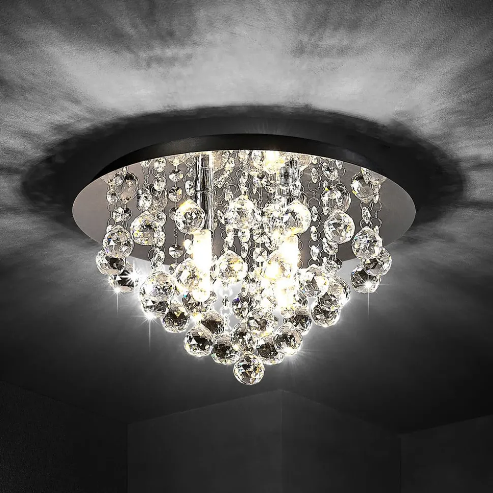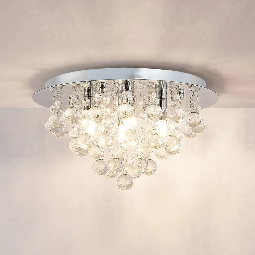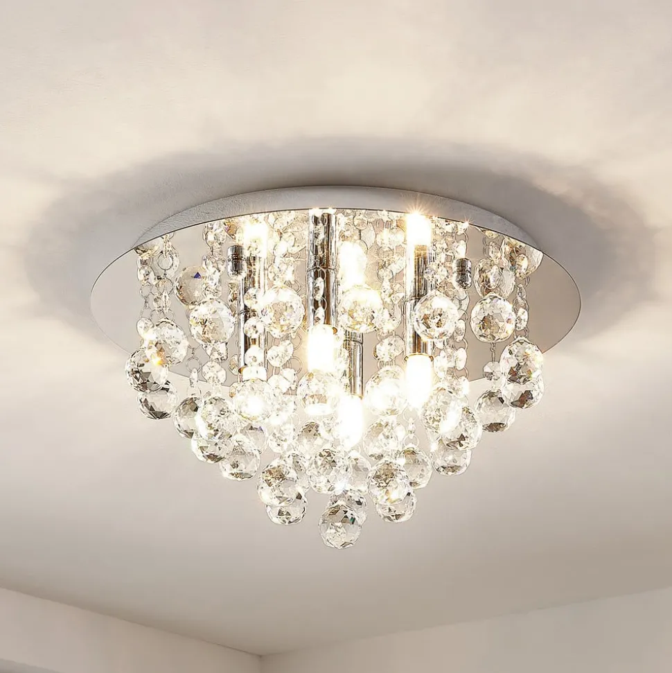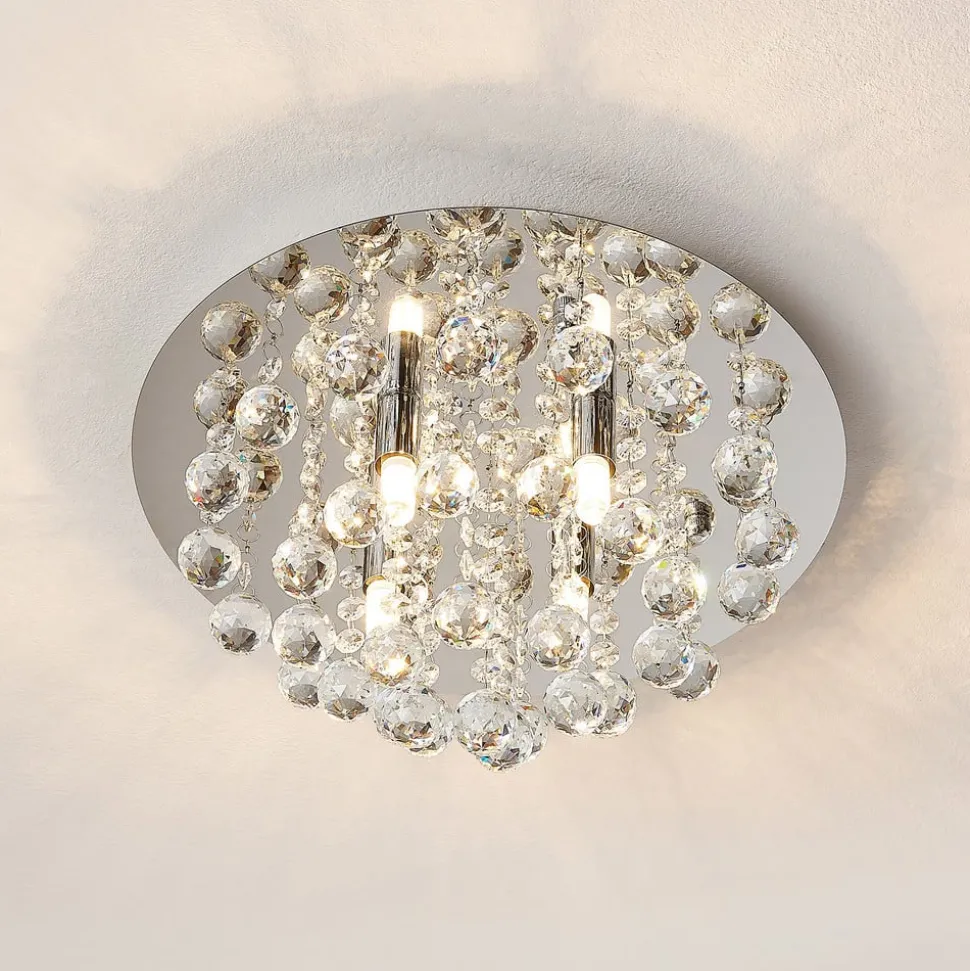 Lindby plafondlamp Antonino, 4-lamps, chroom, kristal, 35cm