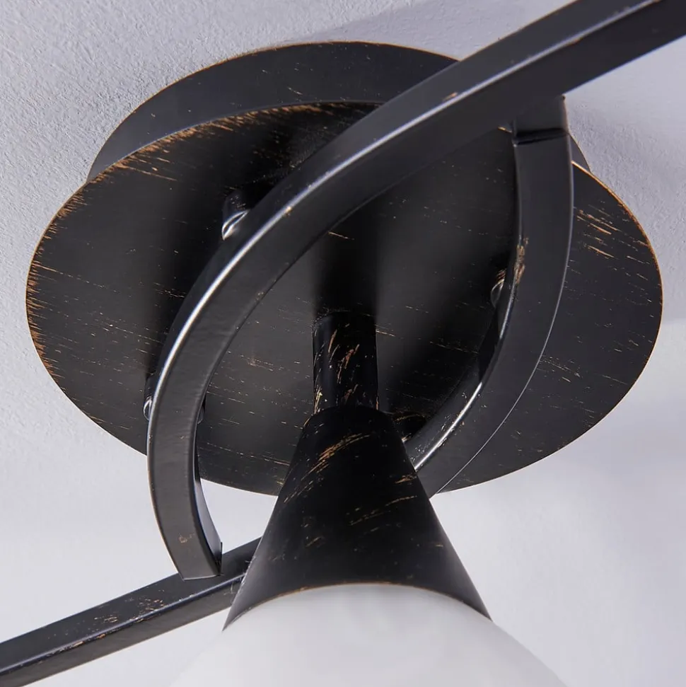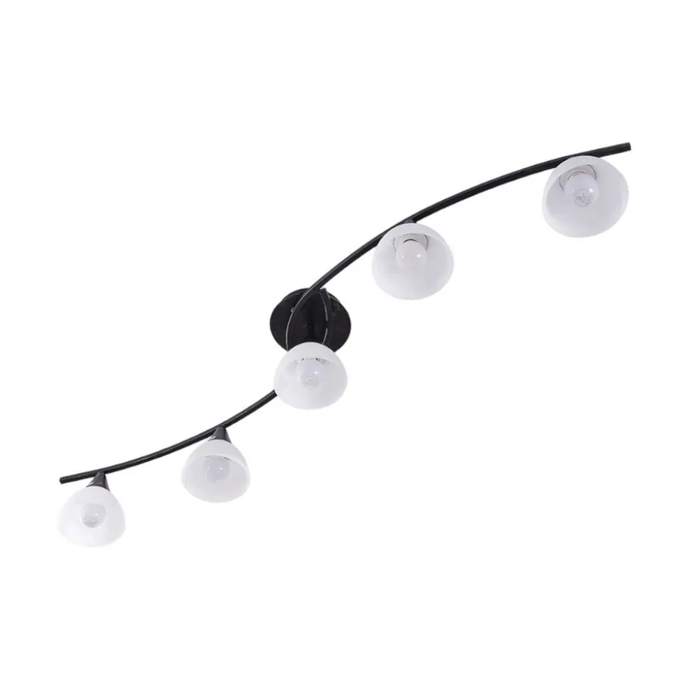Della – plafondlamp in een 5-lamps uitvoering Het bijzondere aan deze plafondlamp is haar afwerking, want ze is niet gewoon zwart, maar heeft ook fijne gouden penseelstreken. Dit geeft het uiterlijk een licht rustiek tintje, dat gemakkelijk kan worden gecombineerd met verschillende landhuisstijlen. Dankzij de langwerpige vorm is een goede verlichting van de ruimte gegarandeerd en de plafondlamp, die werkt met E14 lampen, is niet alleen geschikt voor de woonkamer, maar ook voor een hal, slaapkamer of eethoek.