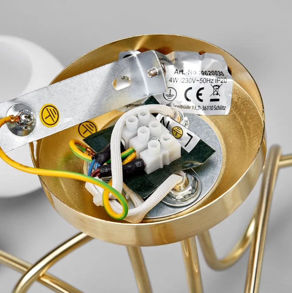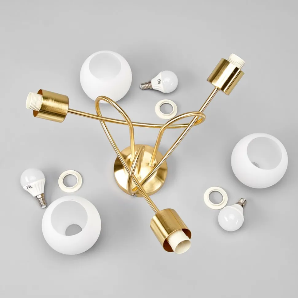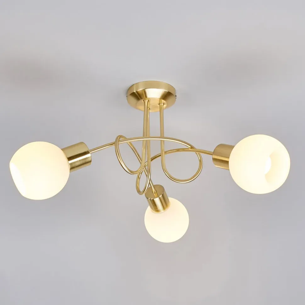 Klassiek ogende plafondlamp Elaina voor E14 lampen Het hele frame van de plafondlamp Elaina is prachtig ingedraaid, wat bijzonder elegant oogt met het messingkleurige oppervlak en perfect past bij een chique, klassieke inrichtingsstijl. De witte opalen glazen kappen creëren een mooie, gezellige gloed die bijdraagt aan een speciaal gevoel van comfort.