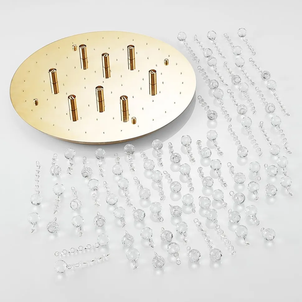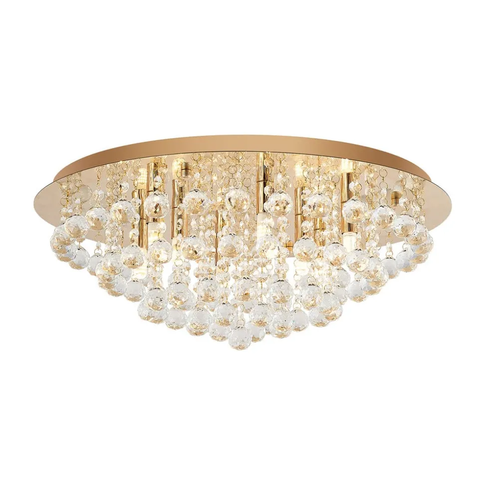 Lindby plafondlamp Gillion, 8-lamps, goud, kristal, Ø 55cm