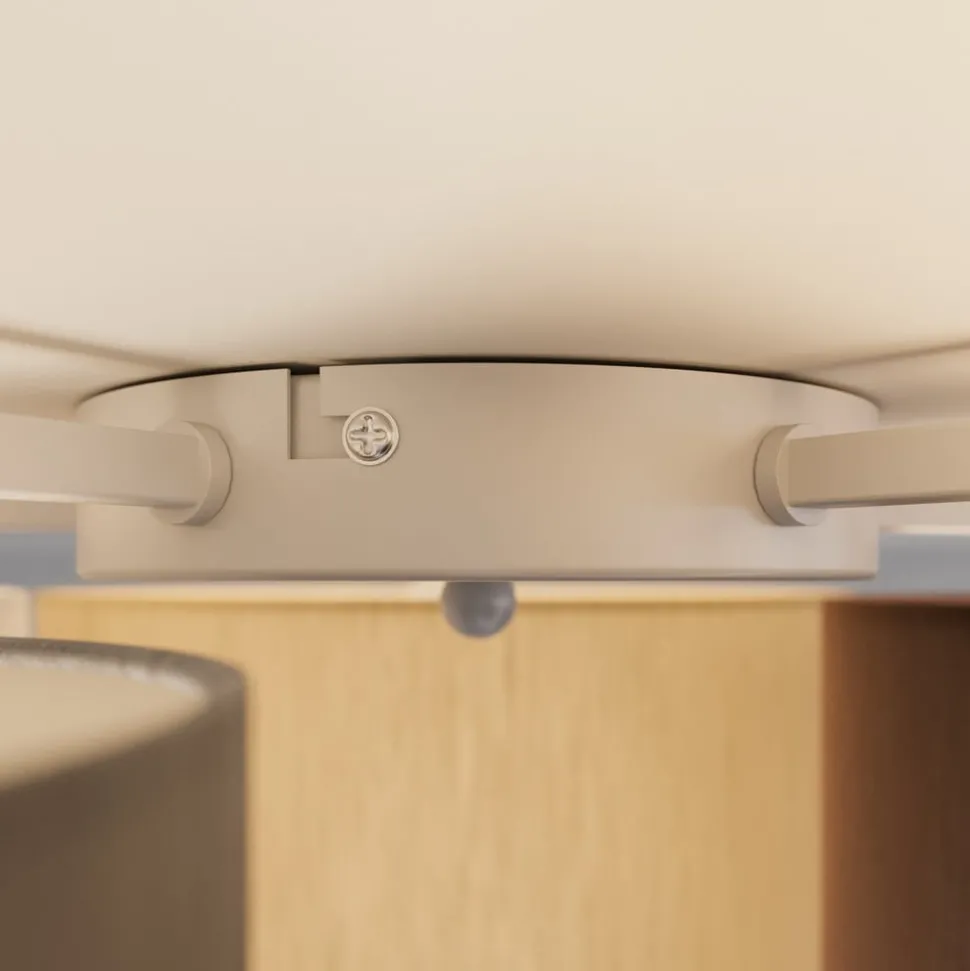 5-lamps Laurenz plafondlamp in prachtige aardetinten Elke kap van de Laurenz plafondlamp is rond, maar de grootte en kleur variëren. Dit zorgt voor een zeer interessante uitstraling die modern en ontspannen oogt. De matte stoffen kappen zijn ontworpen in aardetinten, met grijs, bruin, beige, wit en zwart, die allemaal wat gedempt lijken, maar altijd indruk maken met hun stijlvolle elegantie. De binnenkant van de kap is altijd wit en Laurenz kan worden gebruikt als een woonkamerarmatuur voor gezellige verlichting, maar is ook geschikt voor meer commerciële omgevingen, bijvoorbeeld in hotels of gangen en gastenkamers in restaurants. De vijf lichtbronnen bieden een goed helderheidsniveau, wat ideaal is voor de hoofdverlichting in een kamer. De E27 fittingen kunnen naar wens worden gemonteerd, waarbij vooral energiebesparende LED filament lampen in de klassieke gloeilamp-look worden aanbevolen.