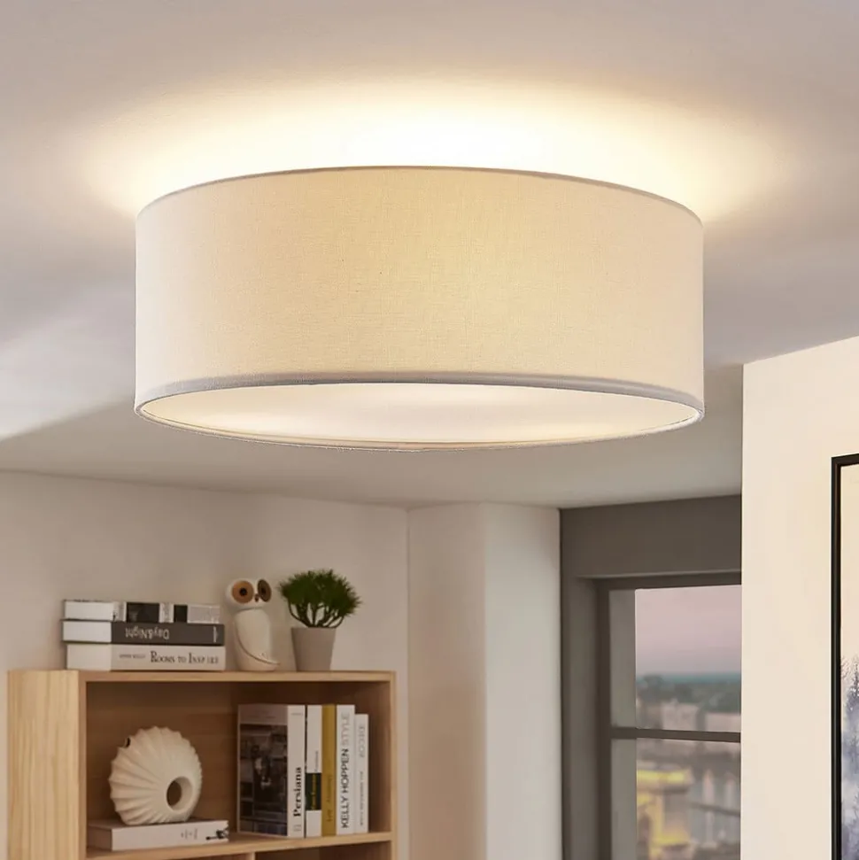 Lindby plafondlamp Mariat, wit, linnen, Ø 45 cm, E27