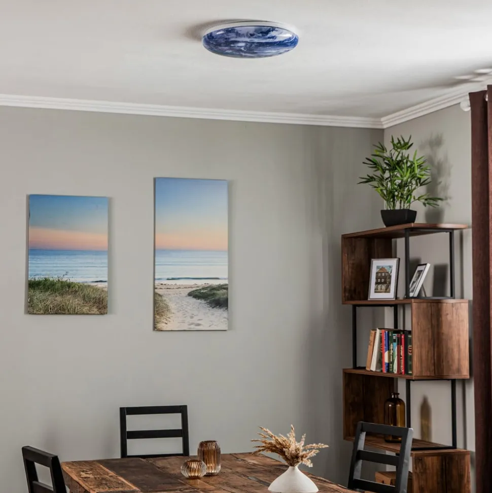 Lindby plafondlamp Orbi, 38 cm, blauw/wit, kunststof
