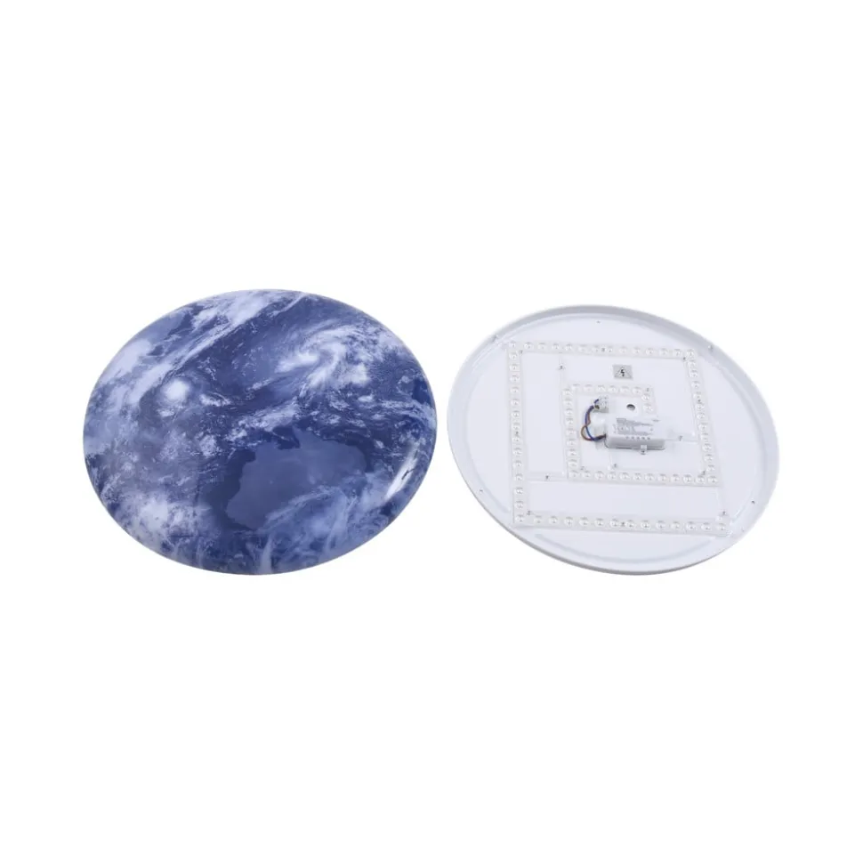 Ronde LED plafondlamp met aardeprint De Orbi LED plafondlamp heeft een bijzonder design. De ronde kunststof diffuser heeft een aardeprint, waardoor het lijkt alsof er een gloeiende bol op het plafond is aangebracht. De lamp is verder veelzijdig en biedt energiezuinig, praktisch licht in elke kamer.