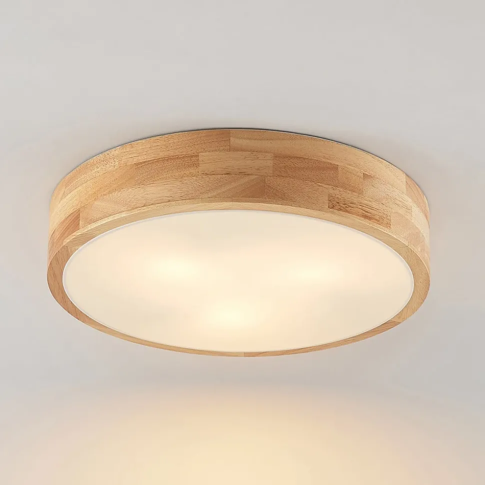 Rustieke plafondlamp Tanju van lichtgekleurd hout met witte kunststof diffuser De prachtig vormgegeven plafondlamp Tanju zorgt voor uitstekende lichtomstandigheden en gezelligheid binnen je eigen vier muren. De plafondlamp maakt het mogelijk om de lichtsterkte naar wens aan te passen met een externe dimmer, past perfect in verschillende kamers en heeft een E27 lampvoet. Het overtuigt in Lindby merkkwaliteit met een uitstekende woonervaring en een doordacht ontwerp. De lamp van lichtgekleurd hout vult het persoonlijke inrichtingsconcept aan dankzij het rustieke, landelijke design. Het model Tanju maakt niet alleen indruk met een prachtig lichtspel, maar vervult ook een decoratief doel.