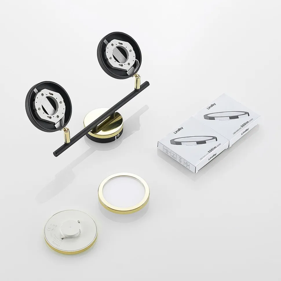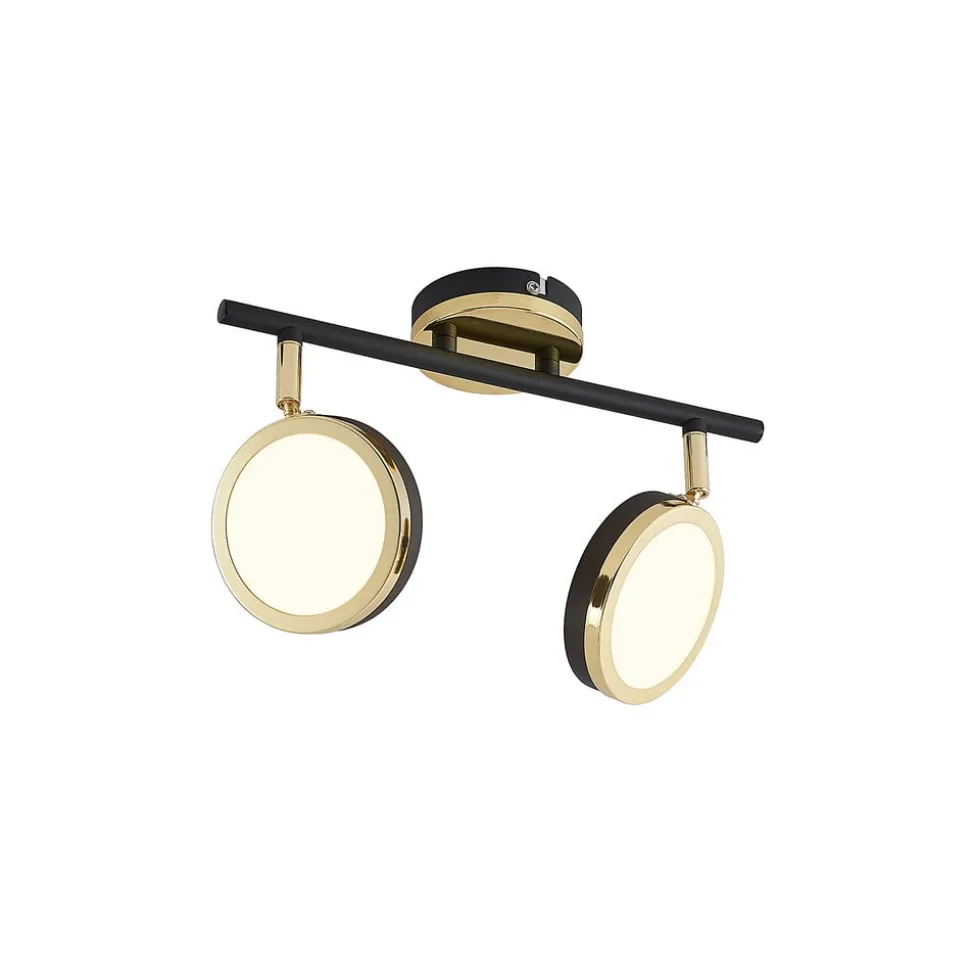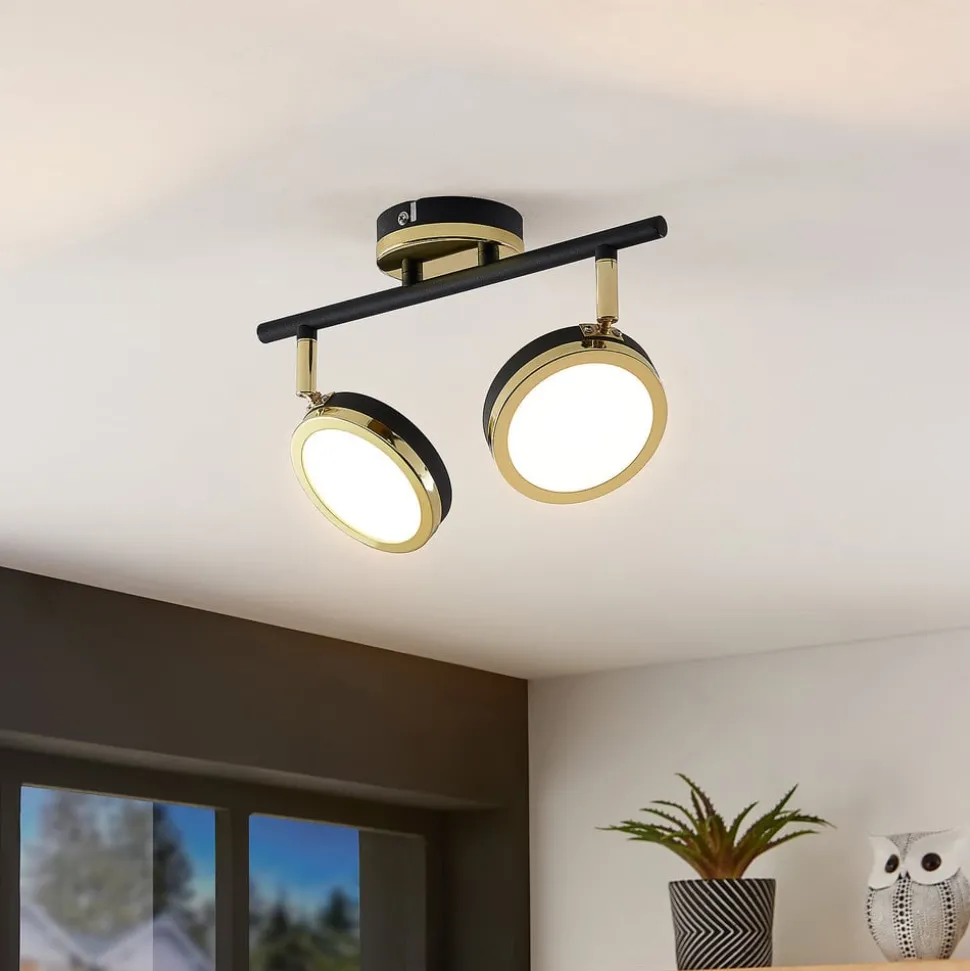 Lindby plafondspot Alsani, 2-lamps, staal, zwart, goud