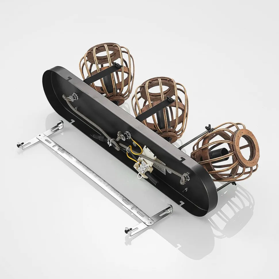 Lindby plafondspot Bominio, 54 cm, 3-lamps, hout, rotan