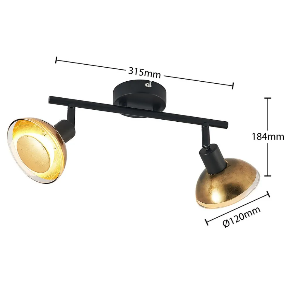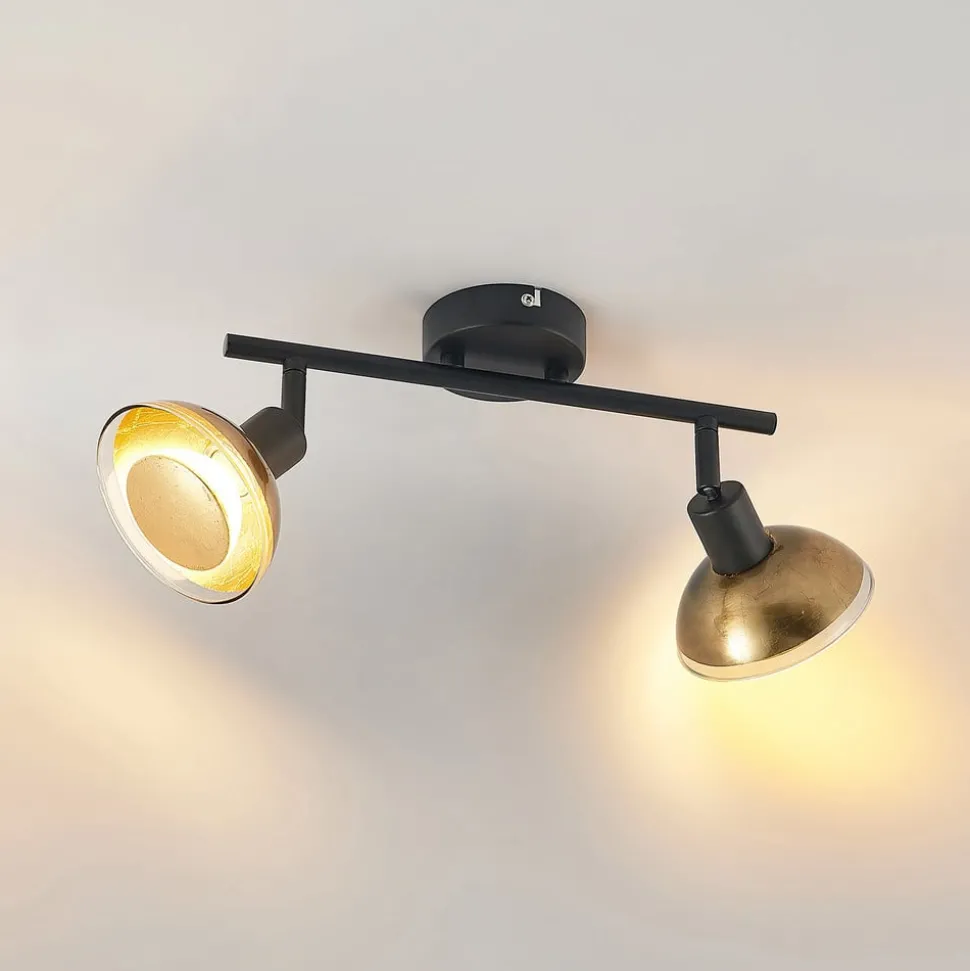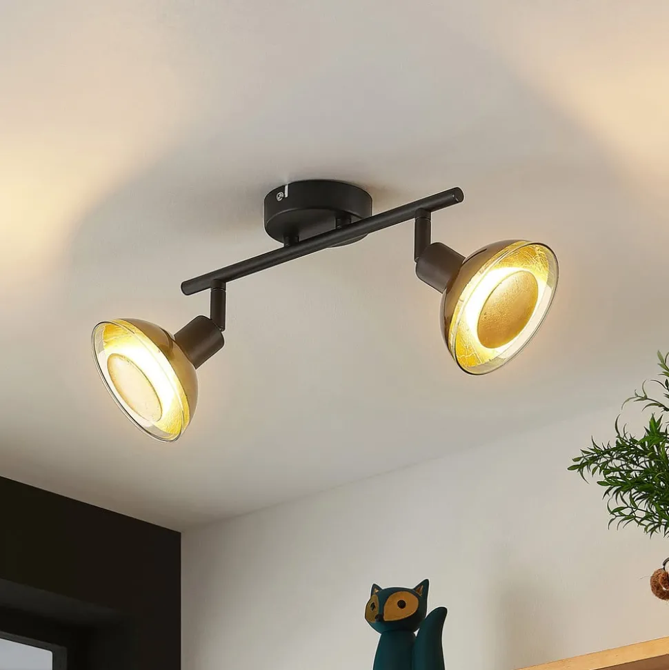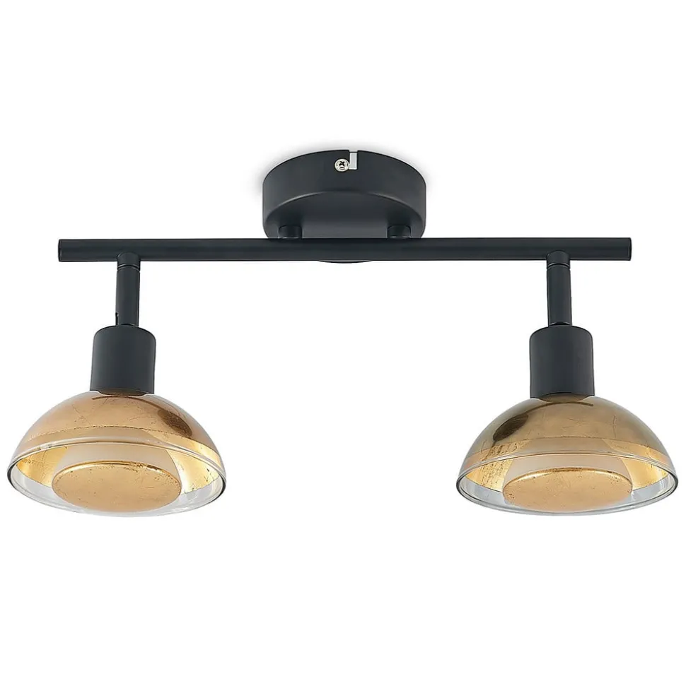 Lindby plafondspot Erin, zwart/goud, 2-lamps, glas