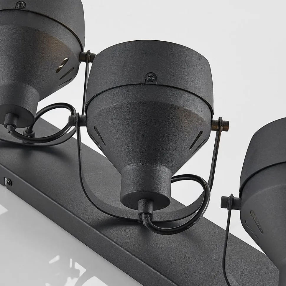 3-lamps Henega plafondspot met drie zwarte kappen in een koplamplook Henega is een lichtbron met een vintage karakter, want de drie kappen, die allemaal anders uitgelijnd kunnen worden, roepen associaties op met oude koplampen, vooral die van oude auto’s. Voor een bijzonder authentieke look is het glas dat de lampen bedekt ook geribbeld. Henega brengt zo een hommage aan lang vervlogen tijden en de plafondlamp heeft een prachtige nostalgische uitstraling die altijd goed valt en de woonruimte individualiseert. Een hoogtepunt dat gezien mag worden!