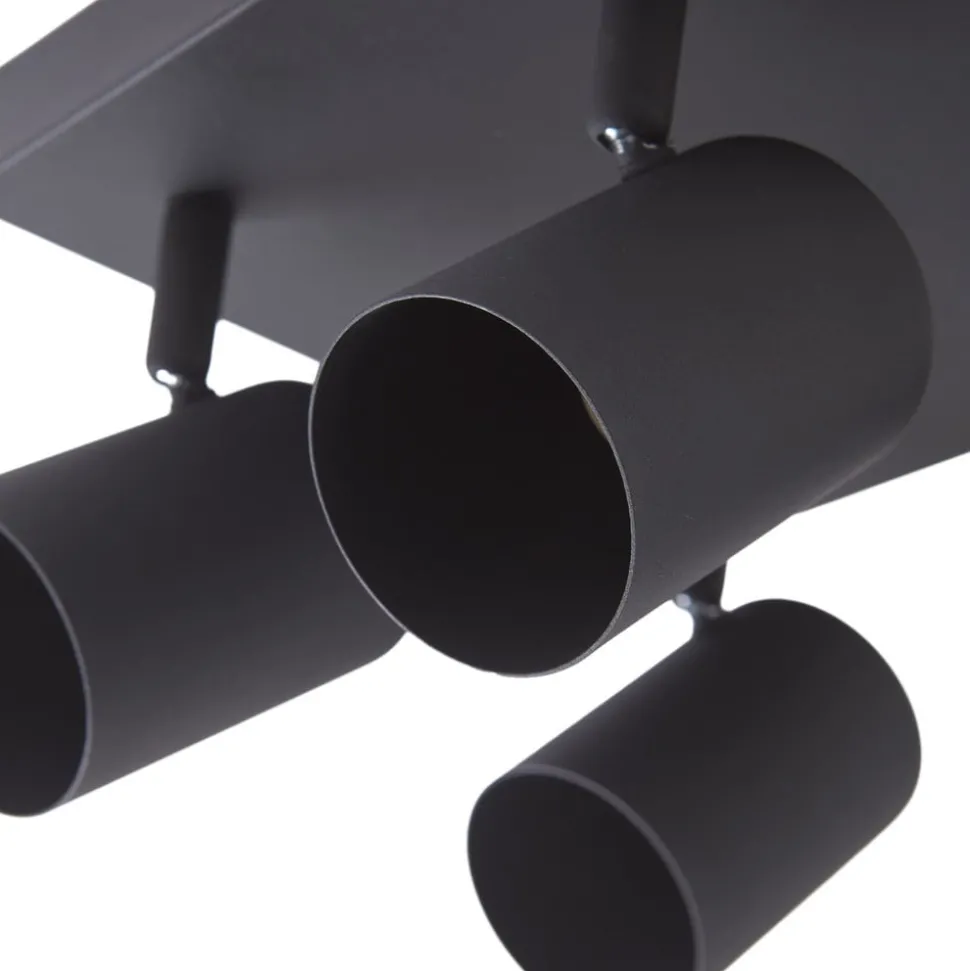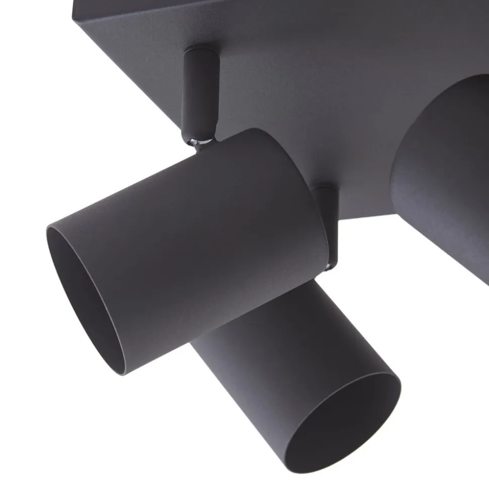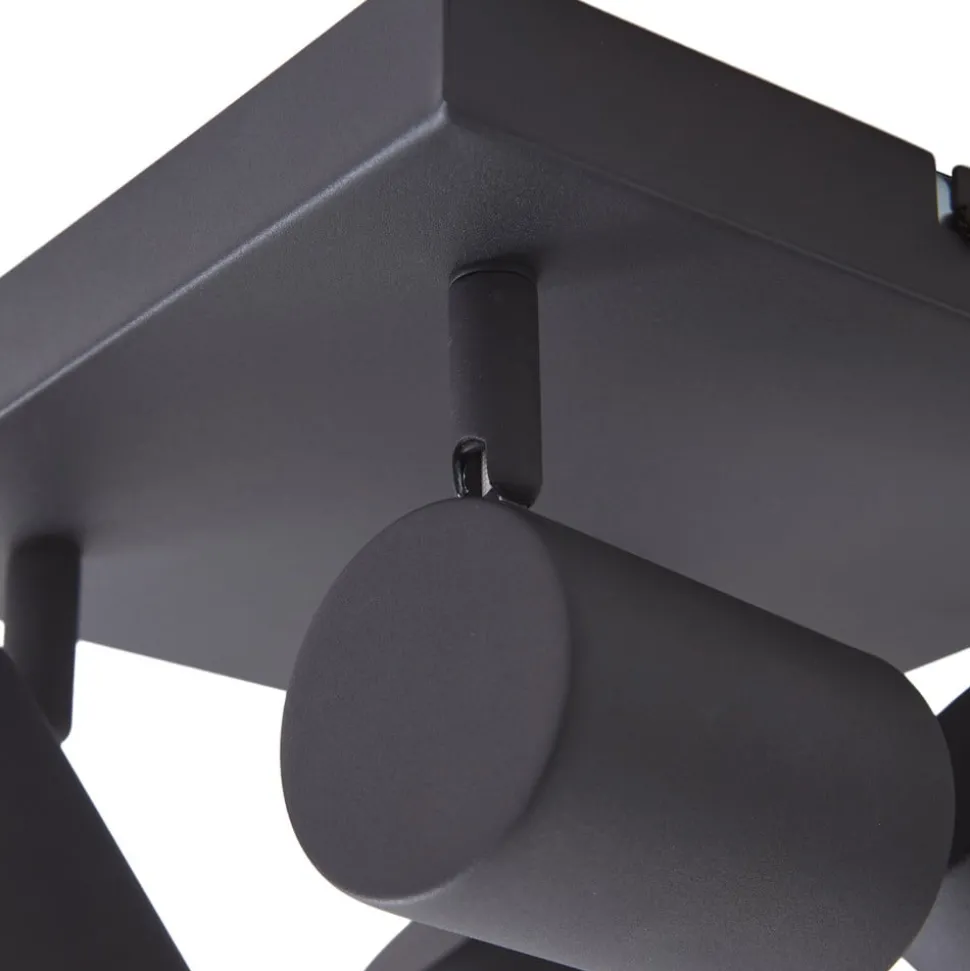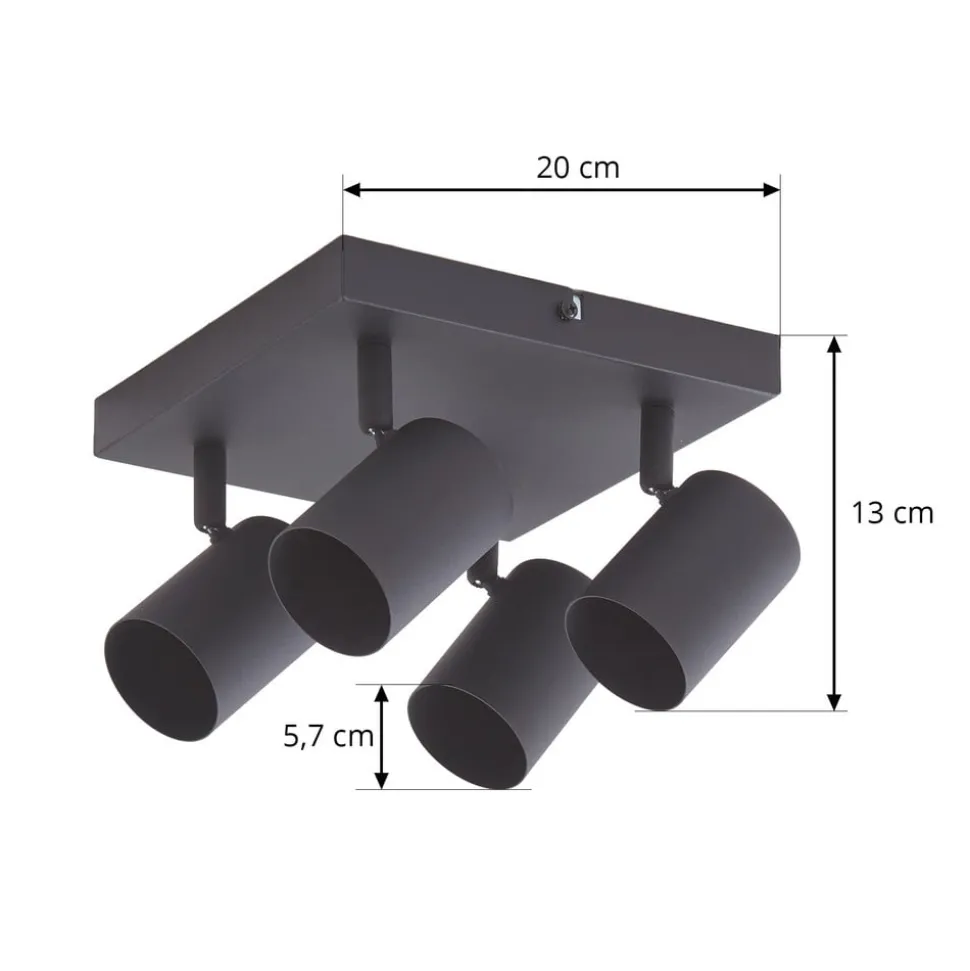 Vierkante Jorell plafondspot met verstelbare lampenkoppen, 4-lamps De Jorell plafondlamp past perfect in tal van woonomgevingen. Het eenvoudige ontwerp maakt vele gebruiksmogelijkheden en combinaties mogelijk en kan gemakkelijk worden geïntegreerd in je moderne interieur. De helderheid van de 4-lamps plafondspot kan geregeld worden met compatibele lampen en een externe fasedimmer. Het frame en de spots zijn afgewerkt in zandzwart. Alle kwaliteiten en HighLights die kenmerkend zijn voor het merk Lindby komen samen in deze plafondlamp. Het armatuur creëert een uitstekende sfeer in elke ruimte en voegt een tijdloos component toe aan je interieur. Jorell is uitgerust met vier GU10 fittingen. De spots kunnen worden gedraaid zodat het licht in de gewenste richting kan worden gericht.