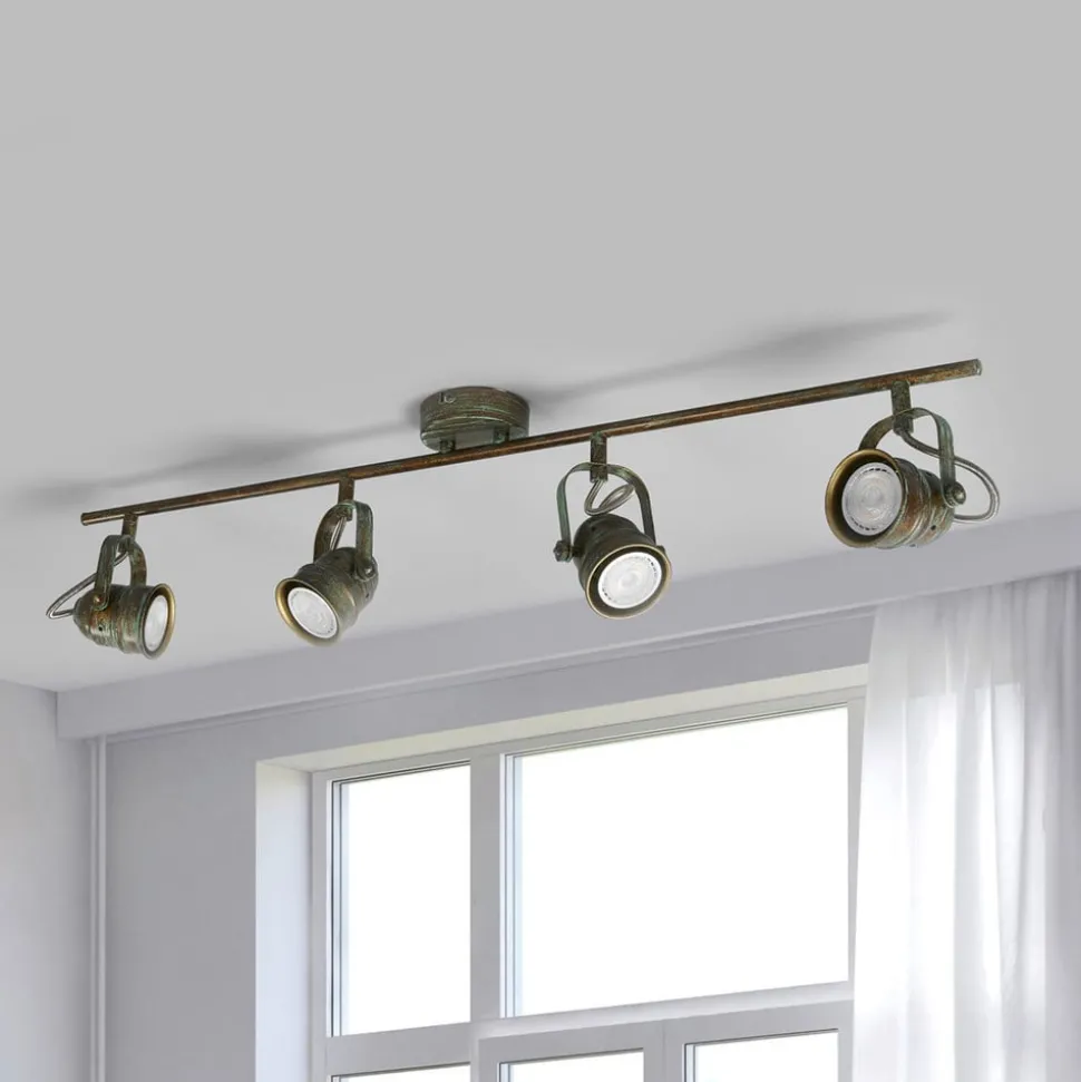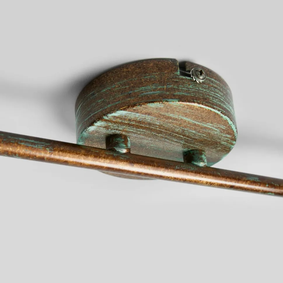 Helder verlichte plafondspot Leonor met verdigris afwerking Leonor kan gebruikt worden als spot voor zowel de keuken als de woonkamer. Als je wilt, kun je de plafondlamp natuurlijk ook in andere kamers installeren. In elk geval is het handig dat de kappen verplaatsbaar zijn en dat hun oriëntatie dus variabel is. Dit maakt het gemakkelijker om de lichtomstandigheden aan te passen aan de plaatselijke omstandigheden. Qua kleur domineert de verdigris-look het oppervlak van de plafondspot en geeft het de indruk van een armatuur die in de loop der tijd op natuurlijke wijze is verouderd. Leonor is daarom een echte HighLight voor wie zich graag omringt met antiek ogende interieurs.