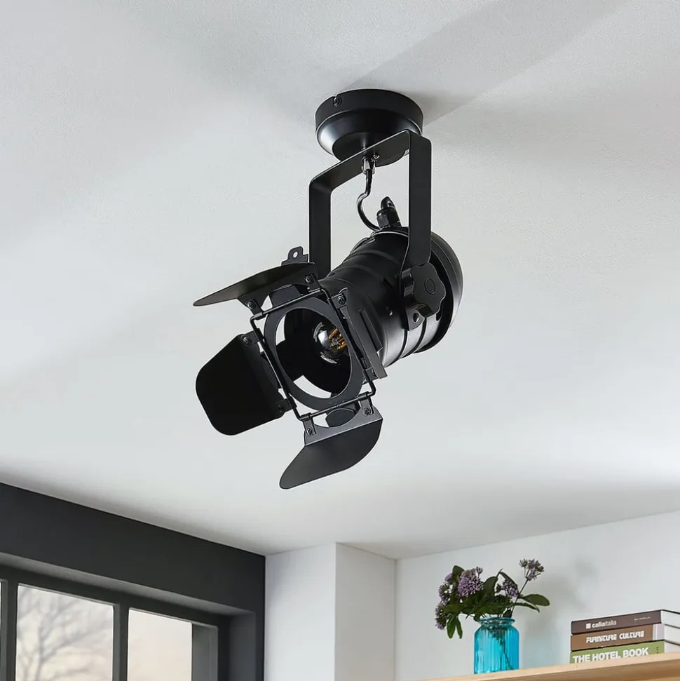 Zwarte Tilen plafondspot in de stijl van oude podiumspots Het motto hier is: licht uit, spot aan! De moderne Tilen plafondspot kan in een paar eenvoudige stappen worden versteld en kan zo, net als een podiumspot, rechtstreeks worden gericht op de plaats waar het licht nodig is. De spot kan gedraaid en gezwenkt worden, waardoor hij perfect is voor gerichte verlichting. De vier buitenste flappen van het armatuur perfectioneren de spot spot look en kunnen ook smaller of verder uit elkaar gezet worden voor decoratieve doeleinden.