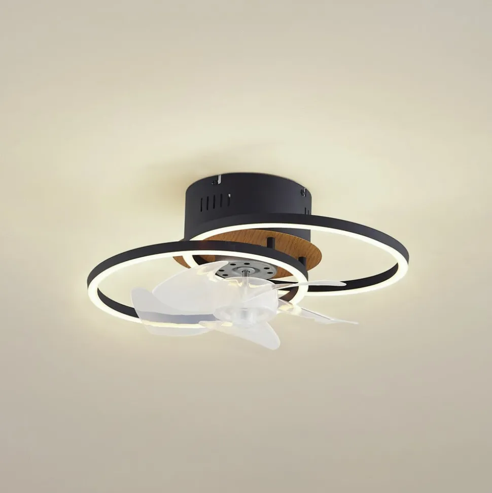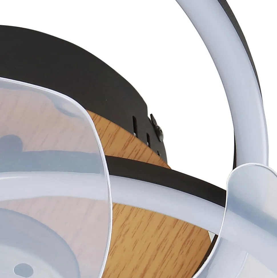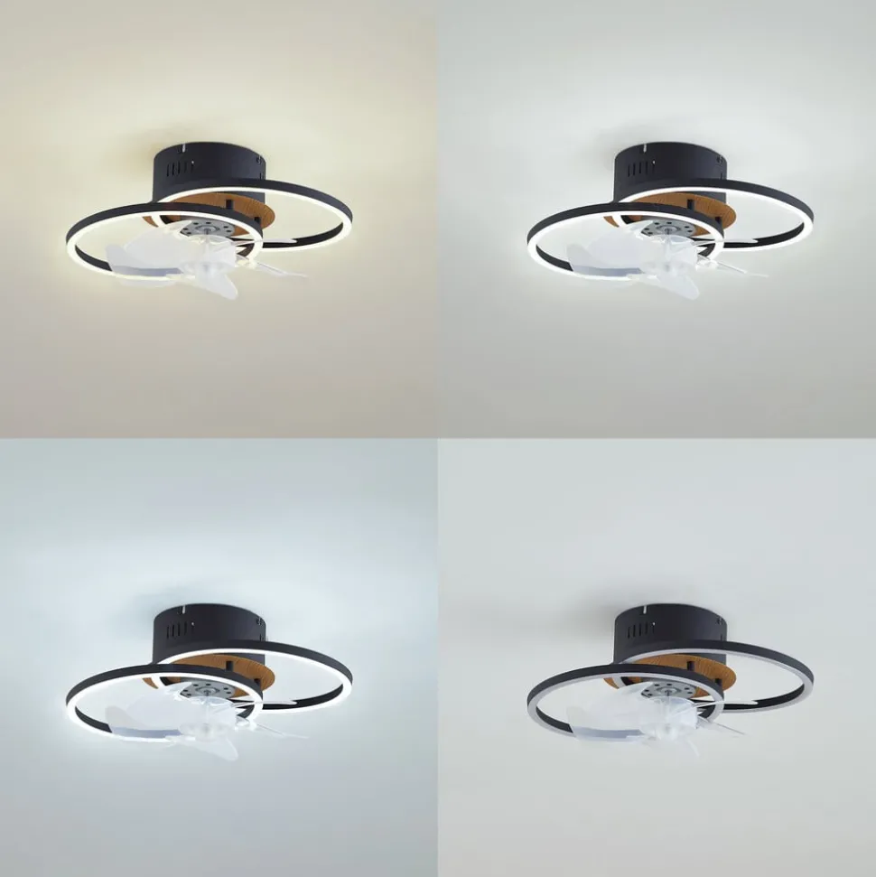 LED plafondverlichting gecombineerd met ventilatorfunctie: de LED plafondventilator Lomana van Lindby LED verlichting in een modern ringdesign wordt bij het model Lomana gecombineerd met een ventilatorfunctie. In het midden zijn transparante bladen aangebracht die kunnen worden bediend met de meegeleverde afstandsbediening. De verlichting kan ook worden gedimd en de lichtkleur (wit) kan worden gewijzigd met de afstandsbediening. Technische details Vermogen per snelheid: – 35 watt bij 1140 tpm – 30,4 watt bij 950 tpm – 27,2 watt bij 760 tpm – Maximale luchthoeveelheid: 40,57 m³/min – Maximale luchtsnelheid: 1,91 m/sec – Ventilator geluidsniveau: 51,5 dB (A) – Bedrijfswaarde (SV): 1,23 (m³/min)/W