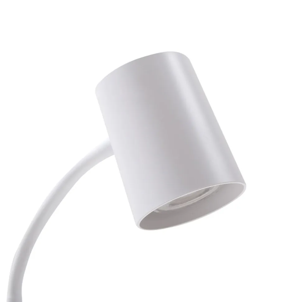 Witte tafellamp Radka met flexibel frame De minimalistische tafellamp Radka heeft een flexibele arm waarmee de lampenkop naar wens kan worden gericht. Een bedieningsschakelaar is geïntegreerd in de voet. De lichtstemming kan worden beïnvloed door de keuze van de GU10 lamp. De lichtstraal wordt gericht uitgestraald doordat de lamp iets naar binnen is geplaatst in de puntvormige kap.