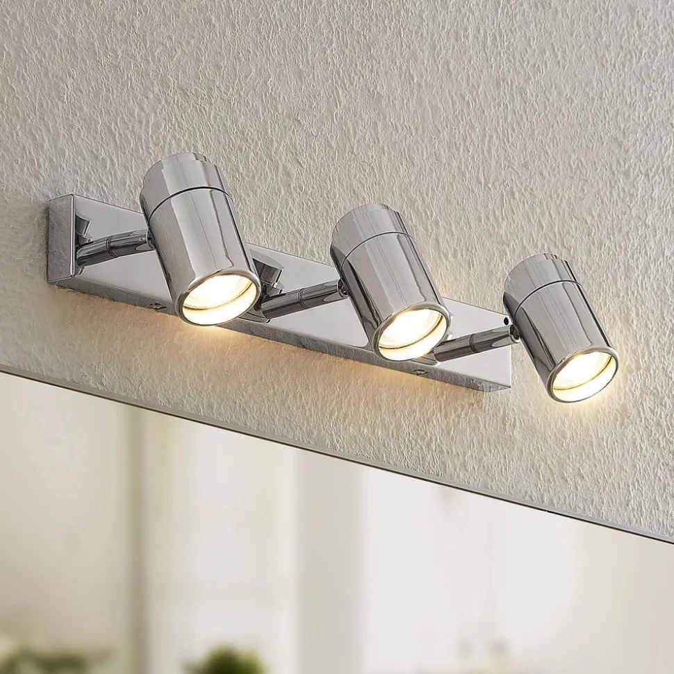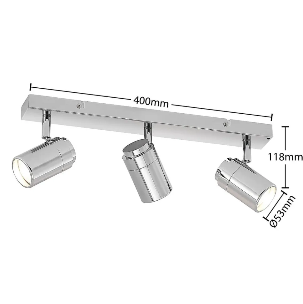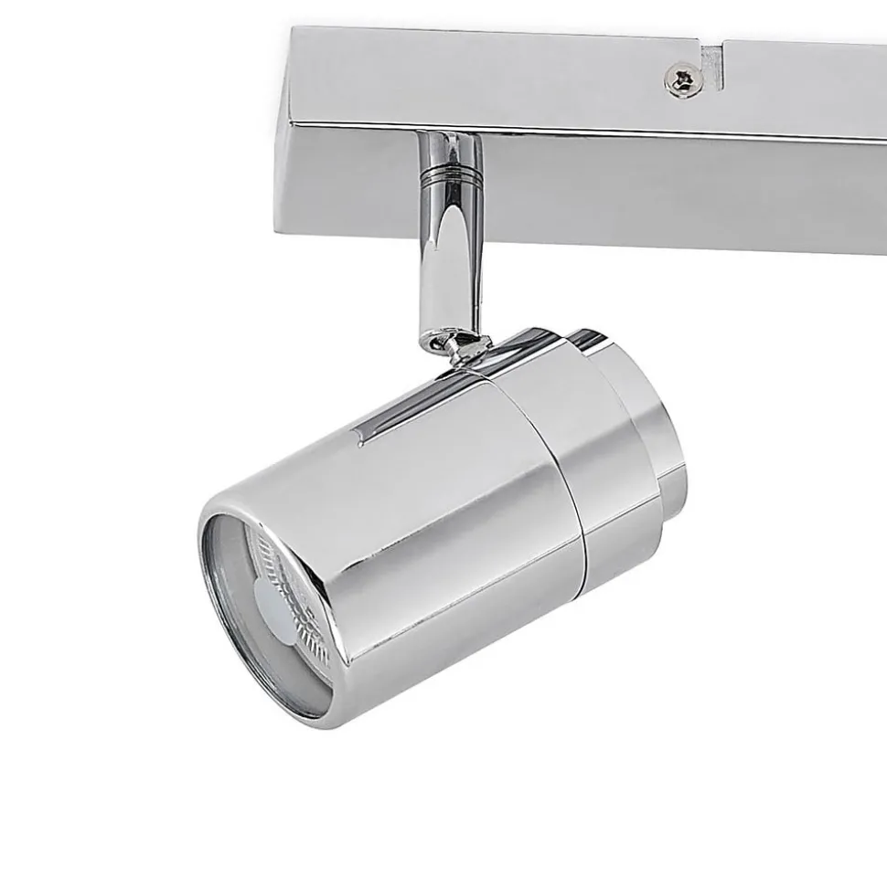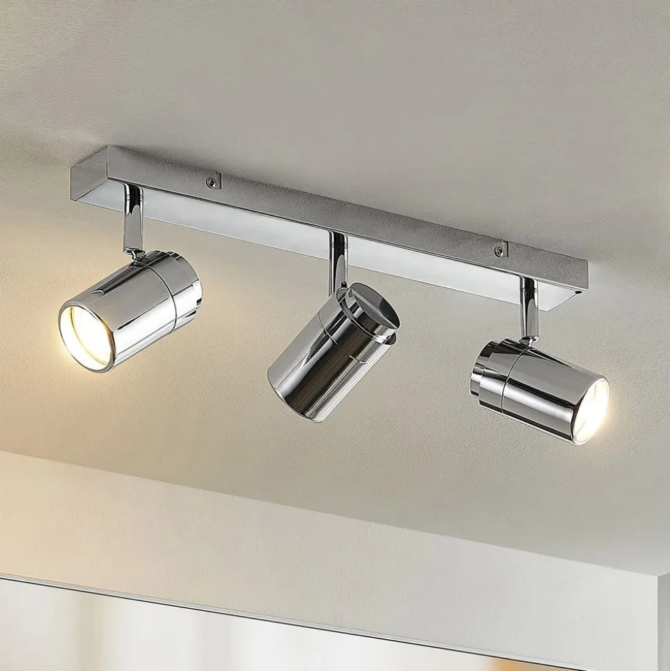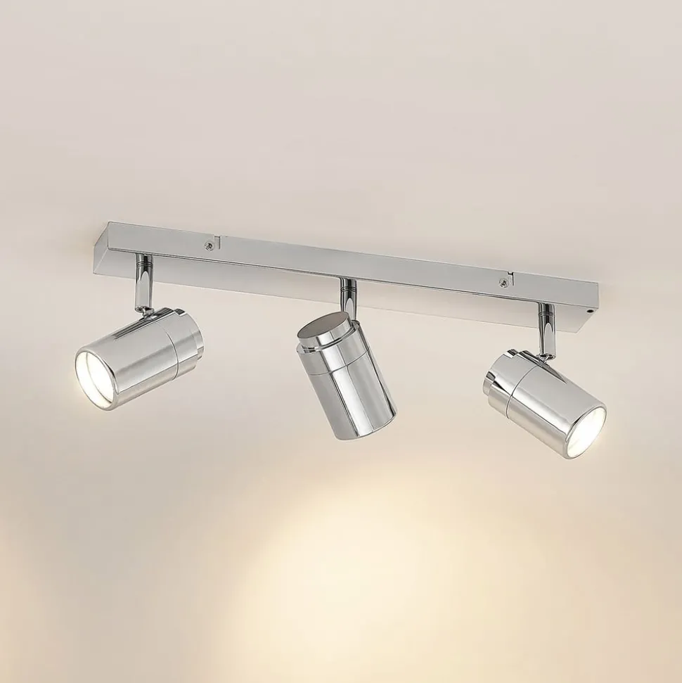 Verstelbare plafondspot Remilan – ideaal voor verlichting in de woonkamer of hal Deze plafondspot maakt indruk met zijn eenvoudige en slanke ontwerp en kan moeiteloos worden gecombineerd met verschillende inrichtingsstijlen. Het moderne ontwerp van Remilan spreekt voor zich. De metalen behuizing en kappen hebben een chroomkleurige afwerking en zien er zeer aantrekkelijk uit aan het plafond. De drie kappen kunnen flexibel worden geplaatst doordat ze elk een kogelgewricht aan de basis hebben.
