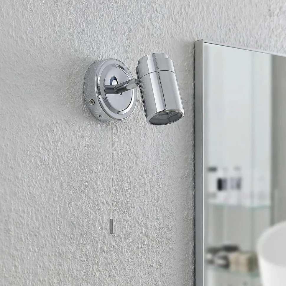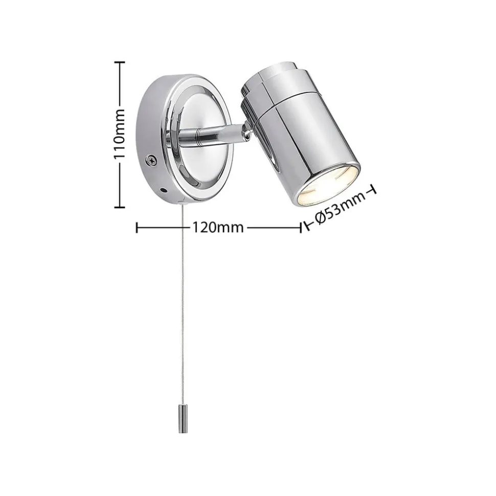 Chroomkleurige Reminlan wandlamp van staal met trekschakelaar Als je een chique accessoire en aangename verlichting aan je huis wilt toevoegen, is deze wandlamp de perfecte wandlamp. Het Remilan-model is eenvoudig te bedienen met de lichtschakelaar en kan naar wens worden gedimd met een externe dimmer. Met deze wandlamp kies je voor merkkwaliteit van Lindby. De lamp in moderne stijl wordt geleverd in een chromen kleur. Hij is ideaal voor elke eetkamer, woonkamer of hal en is geschikt voor gebruik met GU10 lampen. Breng aangename verlichting in huis met de uitstekende Remilan Lamp.