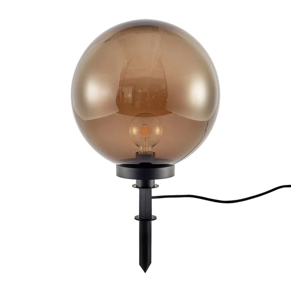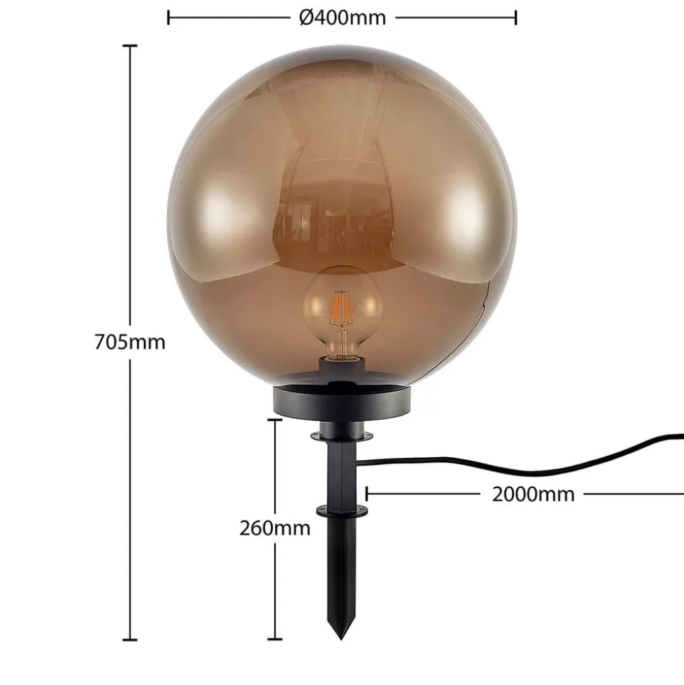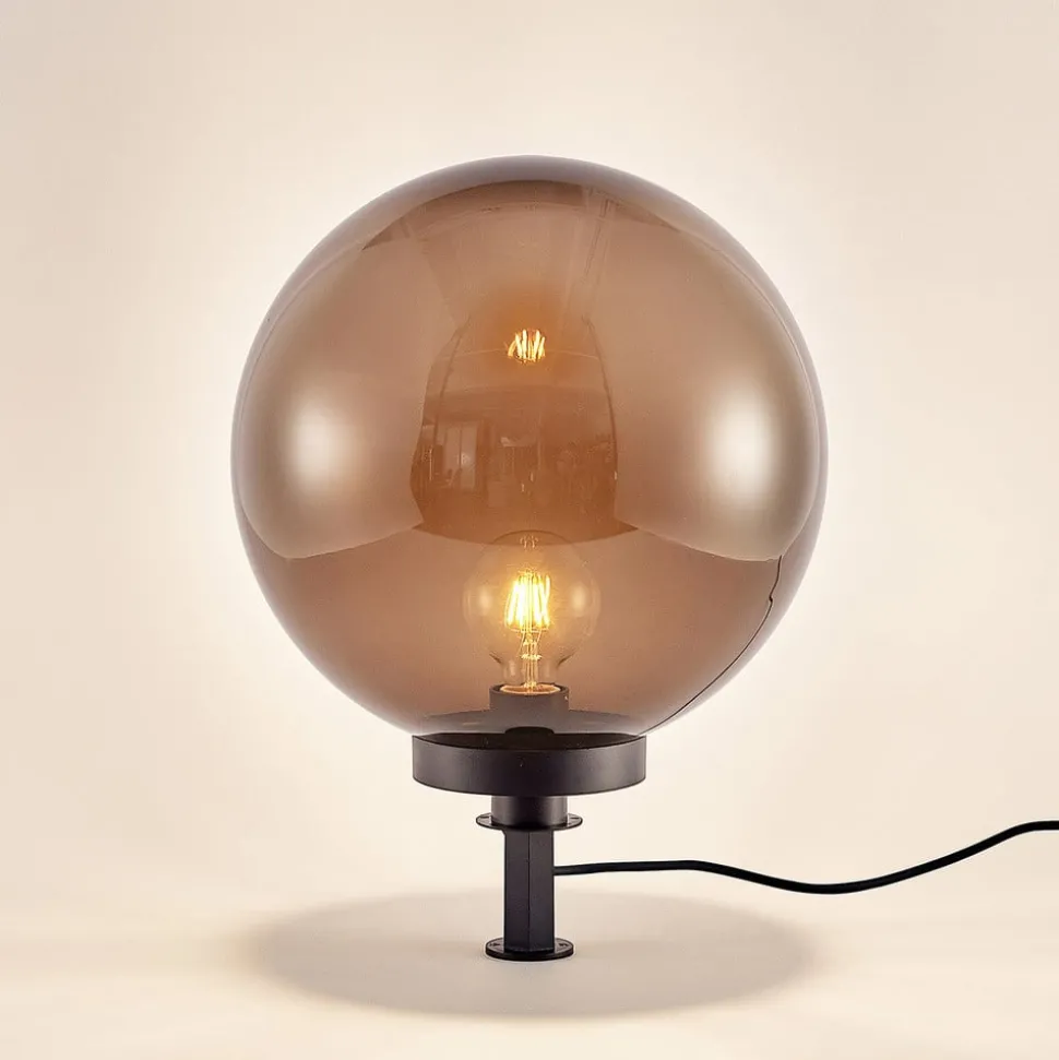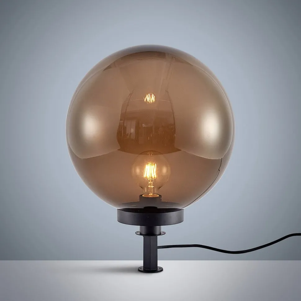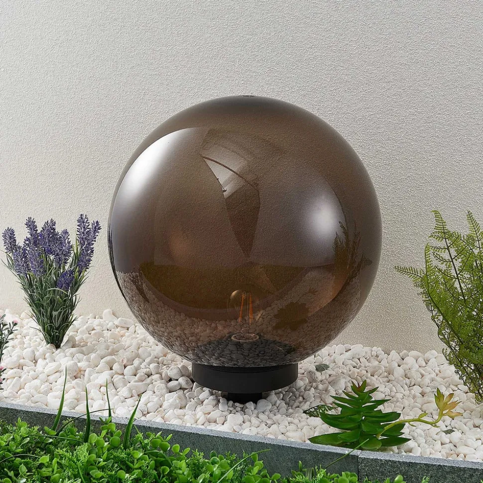 Lichtbol Samini in rookgrijze look en met praktische grondpin Die lichtbol Samini maakt indruk met zijn donkere uiterlijk en verfijnde ontwerp. Ze bestaat uit een kleine, ronde voet waarop een weelderige lampenkap rust. De kap is gemaakt van kunststof en is semi-transparant met zijn rookgrijze kleur, zodat de lamp slechts gedeeltelijk zichtbaar is. We raden aan om hier een decoratieve lamp te gebruiken. Filament lampen of lampen met een rustieke uitstraling zijn hiervoor bijzonder geschikt, omdat Die het algehele uiterlijk van het armatuur benadrukken. Dankzij de beschermingsgraad is Samini goed beschermd tegen weersinvloeden. Er wordt een praktische grondpin meegeleverd zodat de plaatsing in de tuin of op het terras altijd naar wens kan worden veranderd.