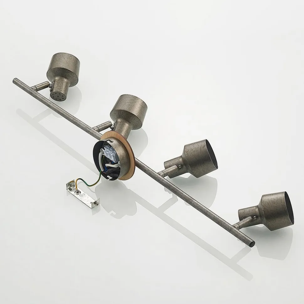 Sanem plafondspot met vier vlammen van staal en houtvezel