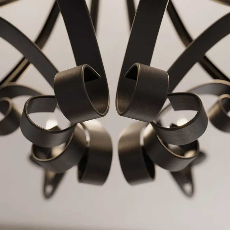 Scaleria gaat bijzonder goed samen met veel antieke of rustieke stijlen, want de kroonluchter heeft een multi-curved frame met romantische spiralen en een donkerbruine oppervlakafwerking met een antiek effect. Op elk van de acht metalen schotels zit een kaarslamp, die naar wens kan worden gekozen. Vintage gloeilampen met LED-technologie zijn aan de ene kant moderne, efficiënte lampen, maar aan de andere kant zorgen ze ook voor veel nostalgie, zodat ze goed passen in de algehele vormgeving. De kroonluchter past vooral in het eetbereik, waar de acht lampen zorgen voor voldoende helderheid en subtiele glamour met rustieke charme.