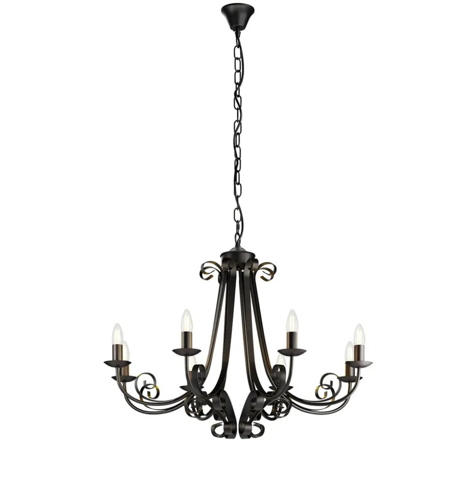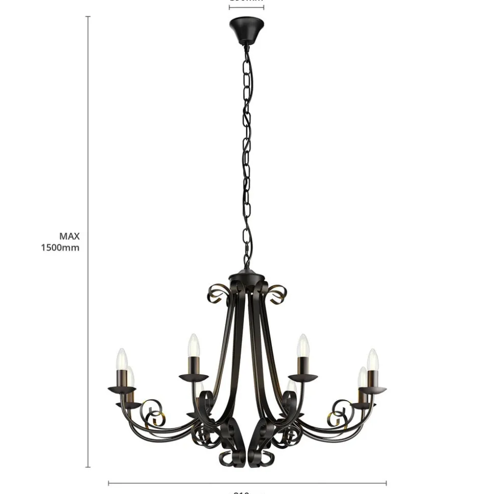 Rustieke, achtlamps kroonluchter Scaleria met donkerbruin oppervlak