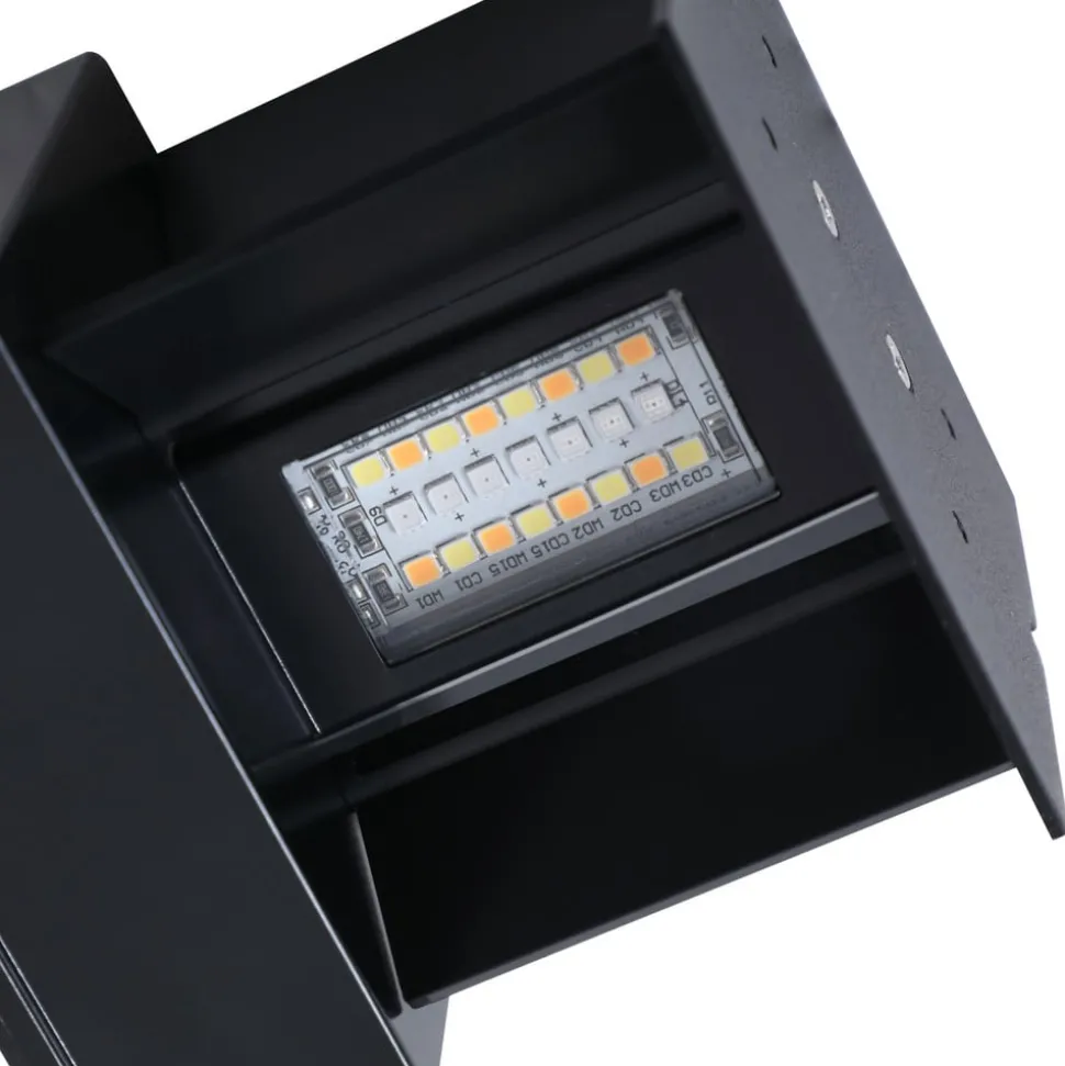 Slimme LED buiten wandlamp Dara in een hoekige vorm met CCT en RGB functie De Dara LED buiten wandlamp is de perfecte keuze voor iedereen die zijn buitenruimte wil uitrusten met flexibel regelbaar licht. Met de CCT- en RGB-functie kan de lichtkleur individueel worden aangepast van warm wit tot daglichtwit, en kunnen ook talrijke heldere kleuren worden geselecteerd. Het is ook mogelijk om de helderheid van het licht te regelen. Dara kan eenvoudig worden bediend via de gratis Tuya met een smartphone of tablet. De LED wandlamp is gemaakt van kunststof en aluminium en heeft een beschermingsgraad IP54, wat betekent dat hij zonder problemen buiten kan worden gebruikt. Met haar moderne ontwerp en hoekige vorm past de lamp perfect in elke buitenruimte en is ze ideaal voor balkons en patio’s.