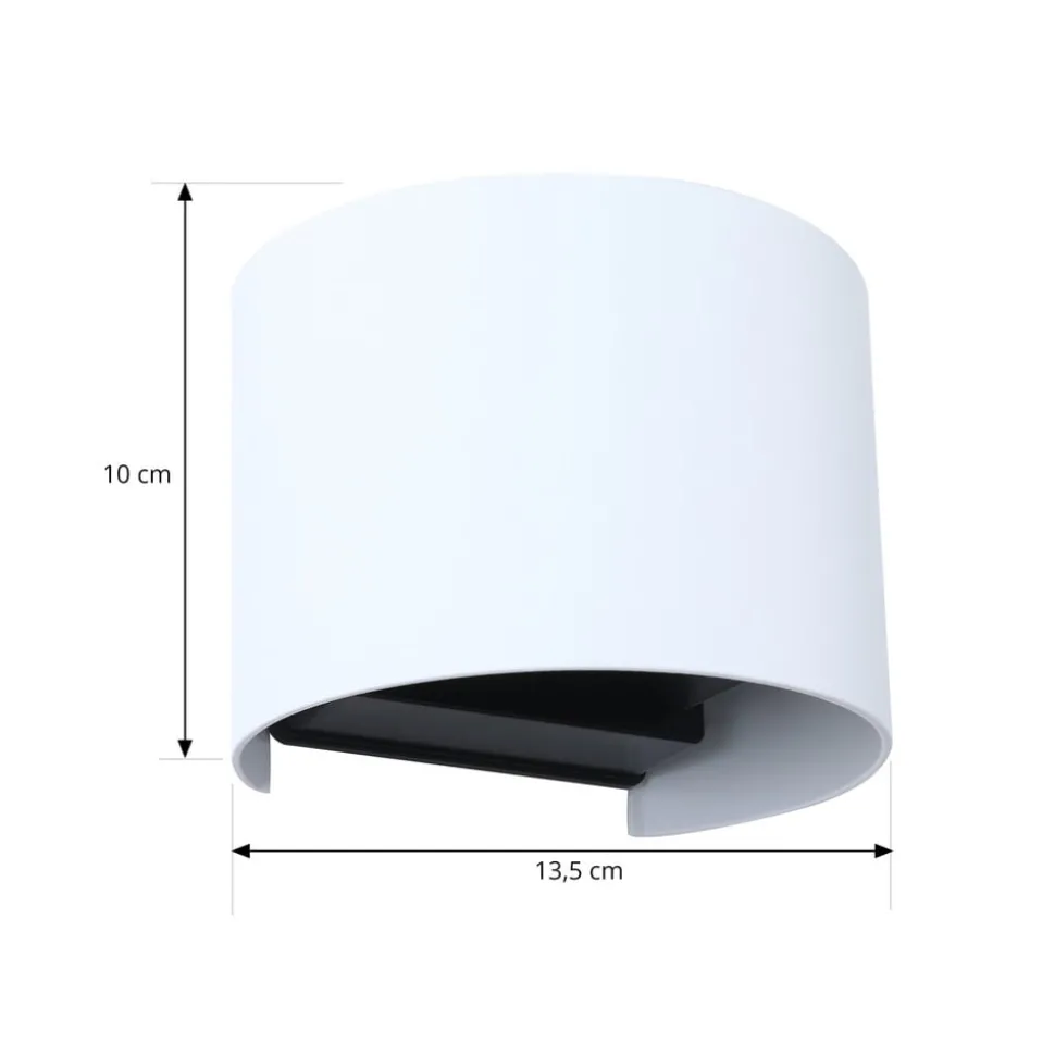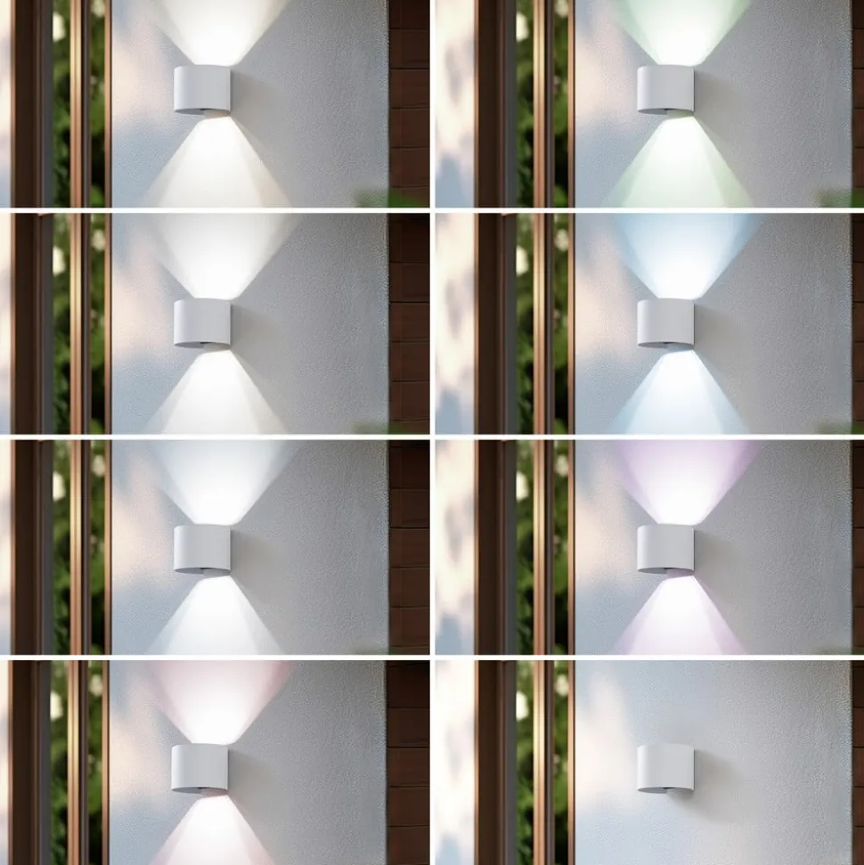 Slimme LED buitenwandlamp Dara in ronde vorm met CCT- en RGB-functie De Dara LED buitenwandlamp is de perfecte keuze voor iedereen die zijn buitenruimte wil uitrusten met flexibel regelbaar licht. Met de CCT- en RGB-functie kan de lichtkleur individueel worden aangepast van warm wit tot daglichtwit, en er kunnen ook tal van heldere kleuren worden geselecteerd. Het is ook mogelijk om de helderheid van het licht te regelen. Dara kan eenvoudig worden bediend via de gratis Tuya met een smartphone of tablet. De LED wandlamp is gemaakt van kunststof en aluminium en heeft een beschermingsgraad IP54, wat betekent dat hij zonder problemen buiten kan worden gebruikt. Met haar moderne design en ronde vorm past de lamp perfect in elke buitenruimte en is ze ideaal voor balkons en patio’s.