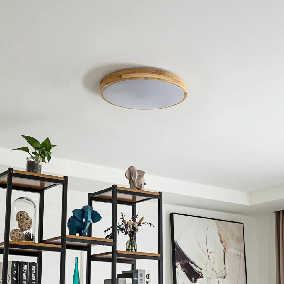 Lindby Smart LED plafondlamp Innes hout Ø39cm RGB CCT Tuya