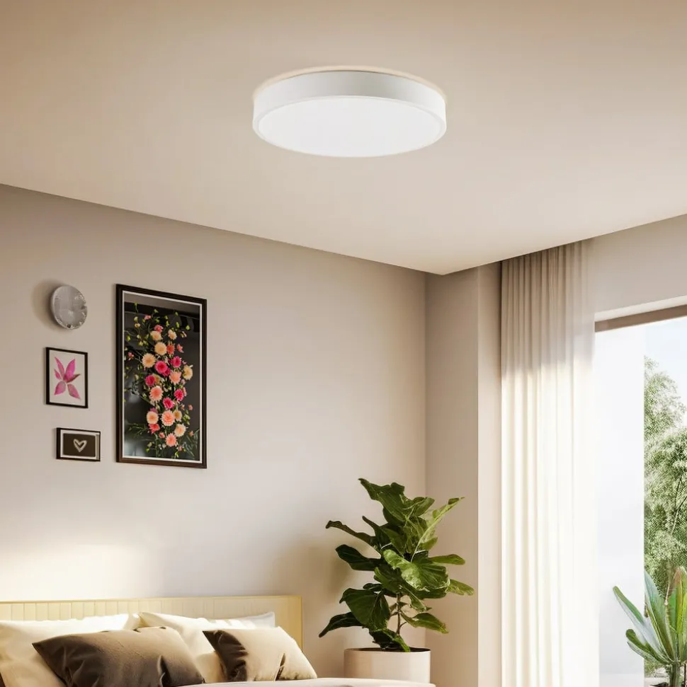 Perfect voor het intelligente huis – de Innes slimme LED plafondlamp De Innes LED plafondlamp maakt de smart home uitrusting compleet of is het begin van een intelligent huis. De ronde armatuur is gemaakt van kunststof en metaal en heeft een witte kleurstelling. De vast geïnstalleerde LED’s kunnen worden gedimd en van lichtkleur veranderen (3.000 – 6.500 K + meerkleurig) en kunnen zo altijd de perfecte sfeer creëren. De Innes LED plafondlamp wordt bediend met de gratis Tuya (beschikbaar voor iOS en Android). Dankzij het eenvoudige ontwerp kan de lamp eenvoudig worden geïntegreerd in een groot aantal inrichtingsstijlen.