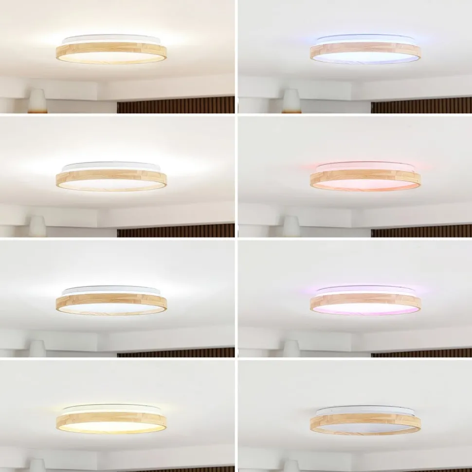 Lindby Smart LED plafondlamp Mirren hout Ø49,5cm CCT Tuya