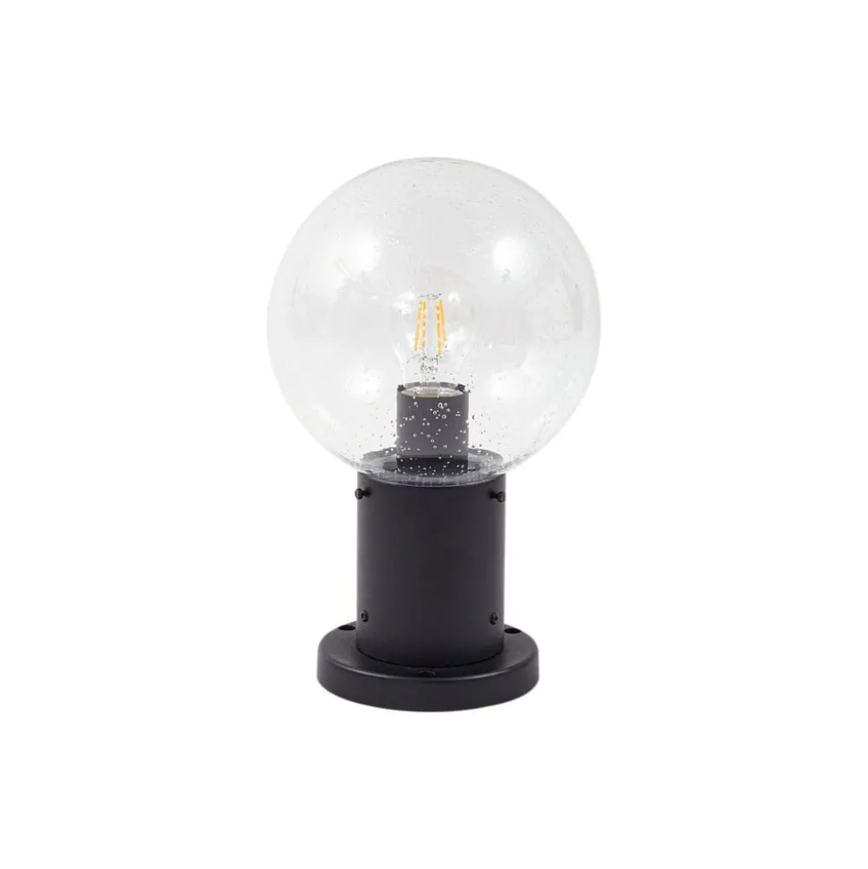 1-lamp sokkellamp Dangan van glas en aluminium – inclusief bewegingsmelder De sokkellamp Dangan combineert modern design met functionele elegantie. De lamp is gemaakt van hoogwaardig glas en robuust aluminium en past naadloos in elke moderne omgeving. De transparante en zwarte kleur geeft de lamp een tijdloze esthetiek die zowel op het terras als in andere buitenruimtes indruk maakt. Met een beschermingsgraad van IP44 is ze optimaal beschermd tegen spatwater, waardoor ze ideaal is voor buitengebruik. Een bijzonder kenmerk van deze lamp is de geïntegreerde bewegingsmelder, die voor extra veiligheid en gemak zorgt. Technische gegevens sensor – Detectiehoek 120° – Bereik 8 m – Verlichtingsduur instelbaar van 10 seconden tot 5 minuten – <20lux