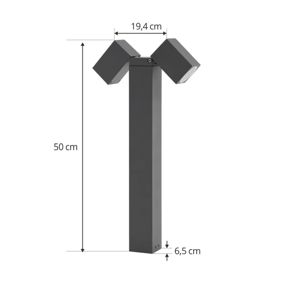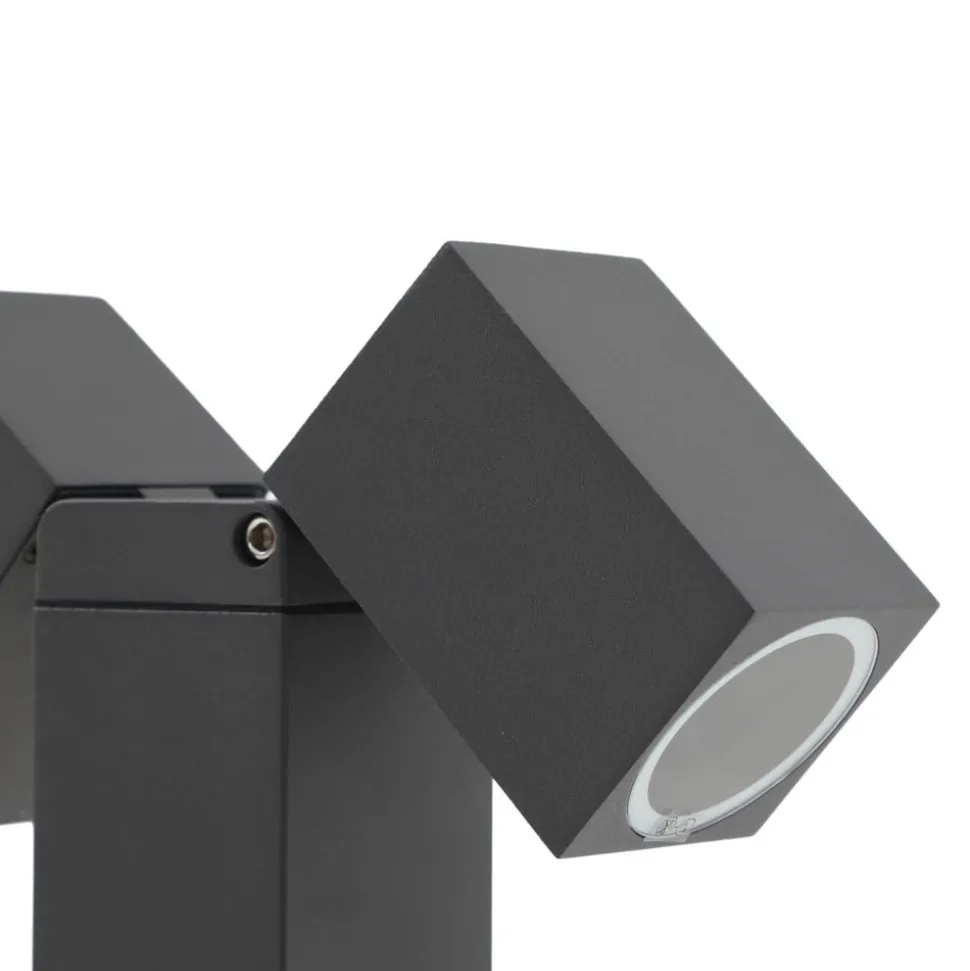 2-lamps Othil sokkellamp met verstelbare kappen De Othil sokkellamp is gemaakt van hoogwaardig aluminium en wordt geleverd in een subtiele donkergrijze kleur. De moderne look verfraait elke buitenruimte en geeft ze een aantrekkelijk tintje. Othil kan bijvoorbeeld in de tuin, op het terras of langs opritten worden geplaatst. De twee lichtpunten spotten licht op de grond en kunnen ook 90° gedraaid worden. Dit maakt het mogelijk om de lichtstraal te richten naar waar het nodig is.