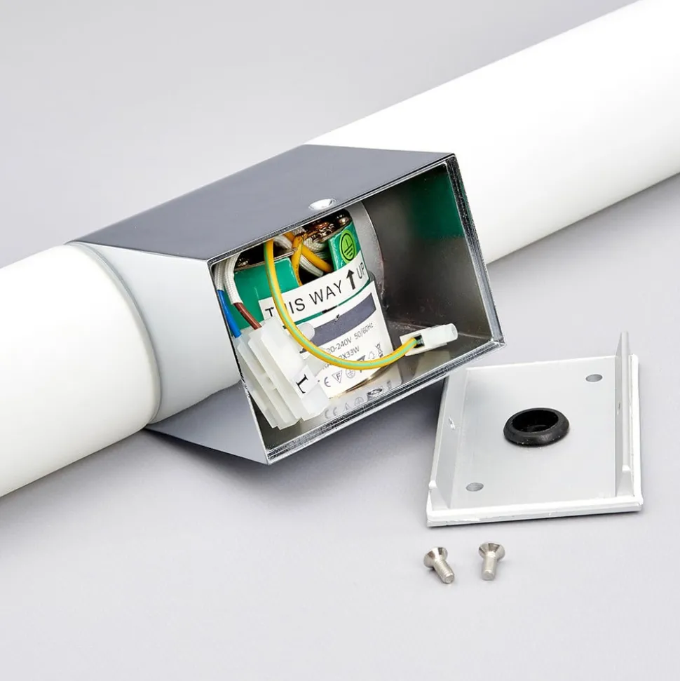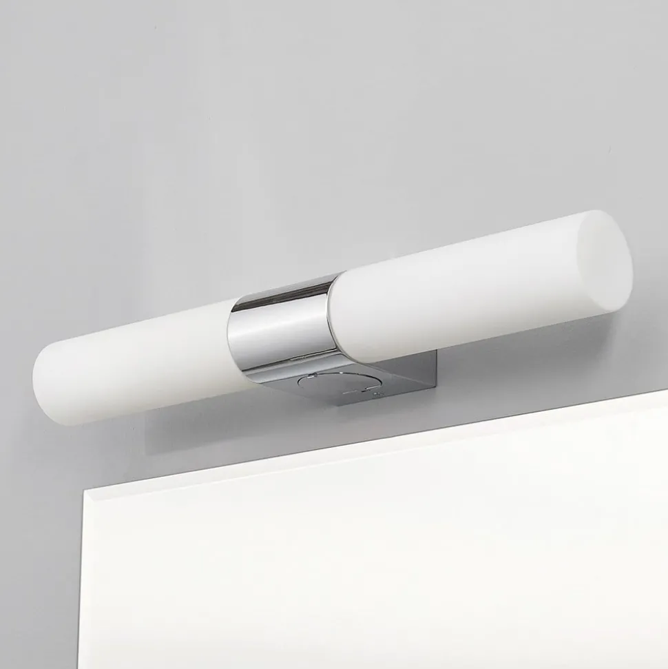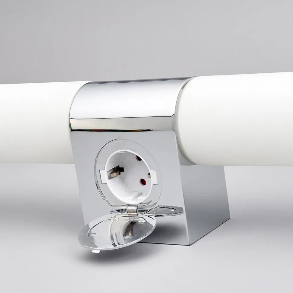 Praktische spiegellamp Ziva met geïntegreerd stopcontact In de badkamer of naast de spiegel wil je een licht dat niet verblindt en gelijkmatig is en, last but not least, bijdraagt aan een aangename sfeer. De Ziva spiegellamp voldoet absoluut aan deze eisen en kan ook bogen op een geïntegreerd stopcontact, wat natuurlijk zorgt voor een verhoogde functionaliteit, want niet alleen is voldoende helderheid gegarandeerd bij het kijken naar het spiegelbeeld, maar ook kan een haardroger of scheerapparaat aan de zijkant worden bediend zonder lang te moeten zoeken naar een mogelijk verafgelegen stopcontact. Een aanzienlijke verlichting voor de terugkerende tijd die je elke dag in de badkamer doorbrengt!