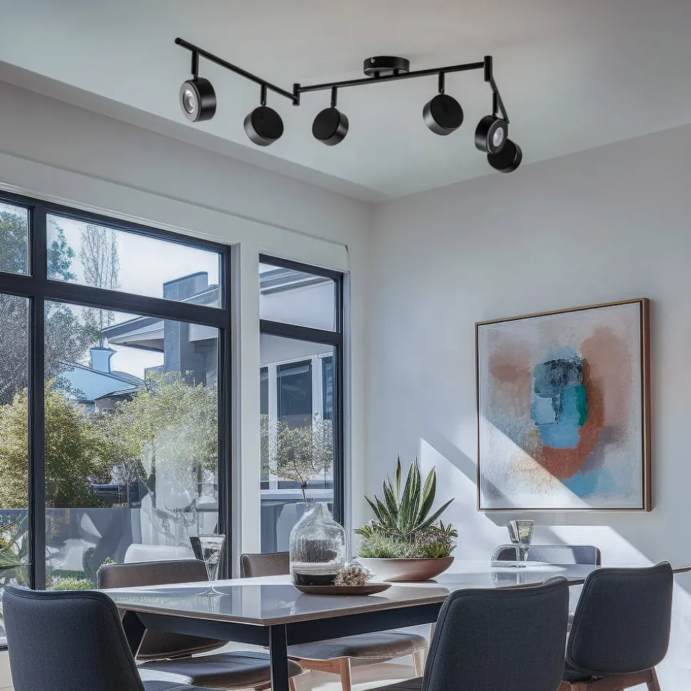 Dimbare Jyla spot met zes verstelbare kappen De 6-lamps plafondspot Jyla is gemaakt van ijzer en geeft de omgeving een geraffineerd accent met zijn zwarte buitenkant. Tegelijkertijd past hij moeiteloos in verschillende woonruimtes dankzij het discrete ontwerp. Hij is bijvoorbeeld ideaal voor gebruik als lichtbron in de gang, keuken, woonkamer of eetkamer. Het frame kan op drie plaatsen worden versteld en de ronde kappen kunnen ook flexibel worden gekanteld en gedraaid. Hierdoor kan het licht op maat worden aangepast en de ruimte optimaal worden verlicht. Er worden zes GX53 lampen meegeleverd en de lamp kan zoals gebruikelijk met een wandschakelaar worden in- en uitgeschakeld. Dankzij de 3-staps dimtechnologie met geïntegreerde uit-functie kan de lamp ook tot drie verschillende helderheidsniveaus worden gedimd door meerdere keren op de schakelaar te drukken: 100 %, 50 % en 12 %.