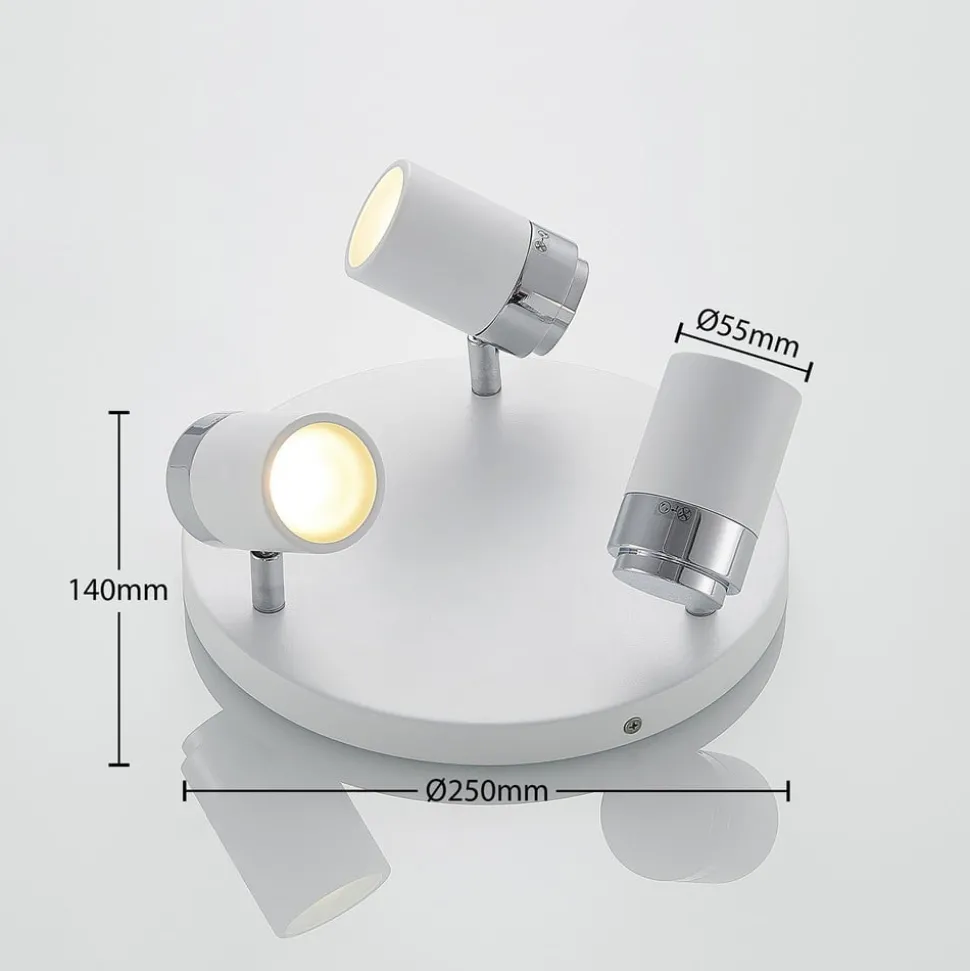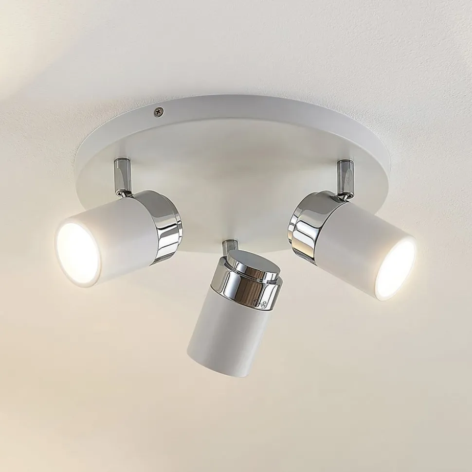 Lindby spot Kardo, rond, 3-lamps, wit, metaal, IP44