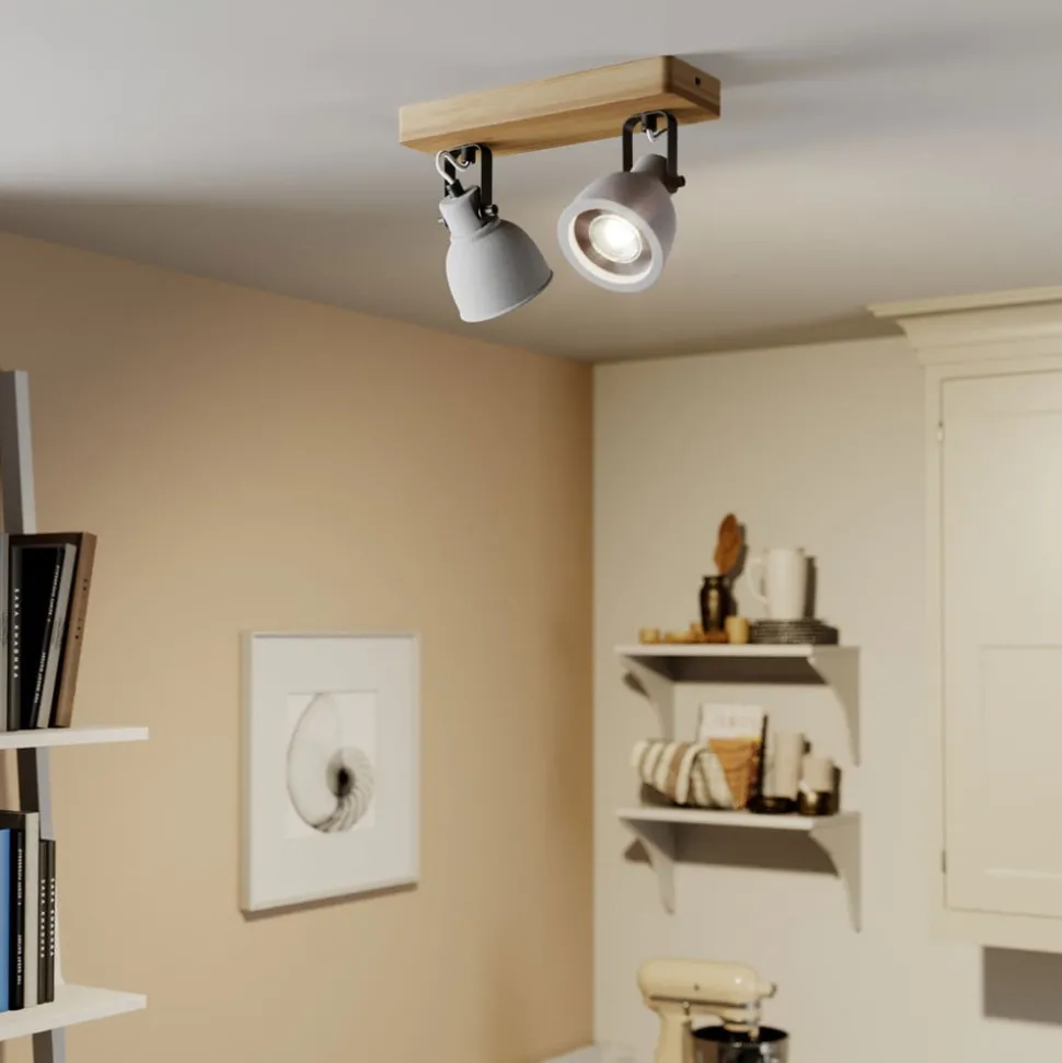Lindby Spot Mitis, 30 cm, 2-lamps, grijs, hout, beton, GU10