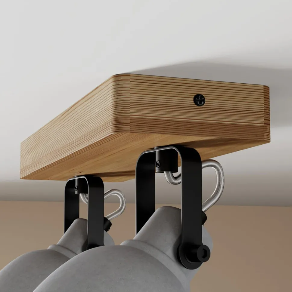 In een trendy industrieel ontwerp: plafondspot Mitis is een plafondlamp die zeker indruk zal maken dankzij het speciale ontwerp. De plafondhouder is gemaakt van dennenhout, dat de lamp een bijzonder mooie uitstraling geeft dankzij de natuurlijke nerf. Het ontwerp wordt afgerond door de betonnen kappen, waardoor de lamp een stijlvol inrichtingselement wordt. Bijpassende GU10 lampen zijn apart verkrijgbaar via de accessoires.