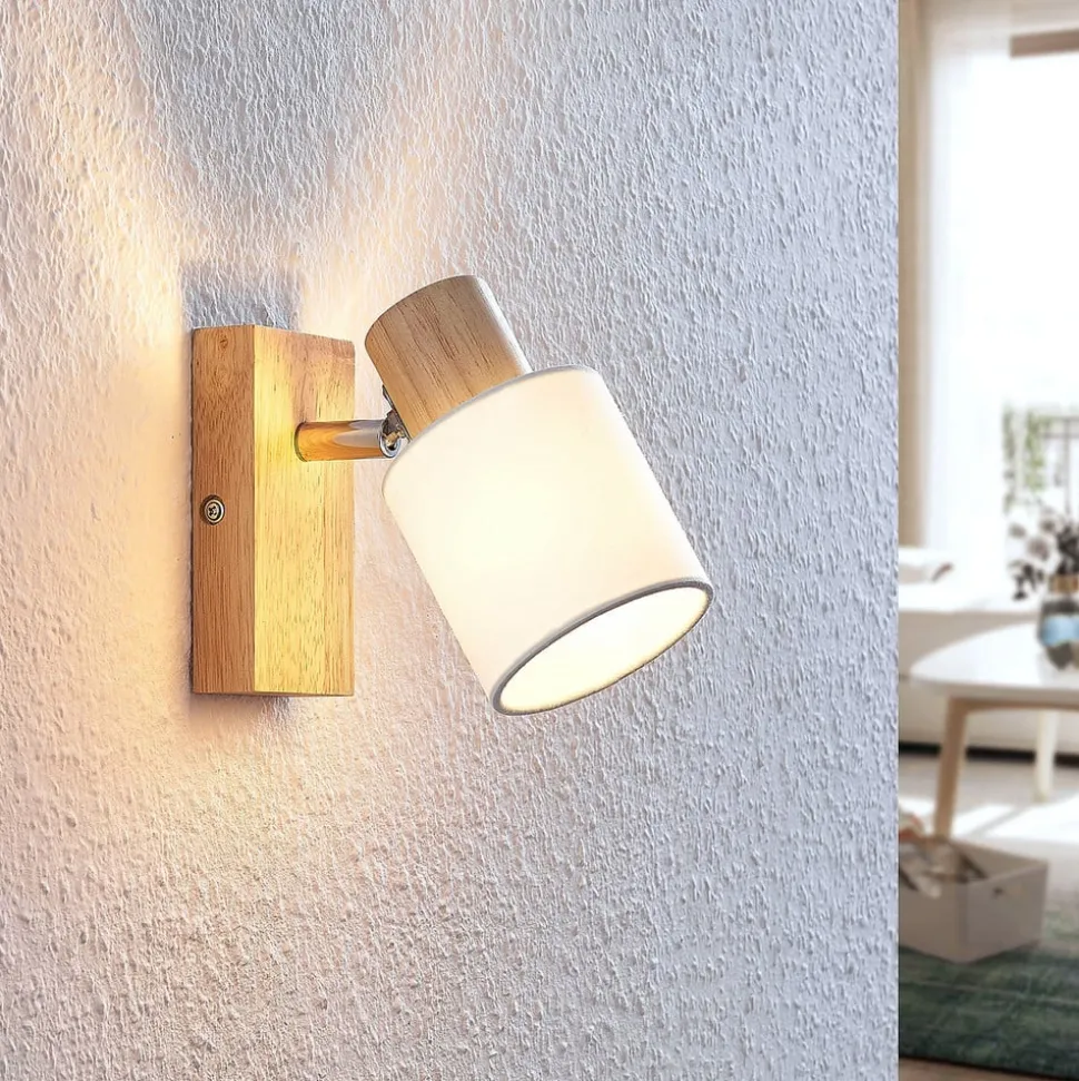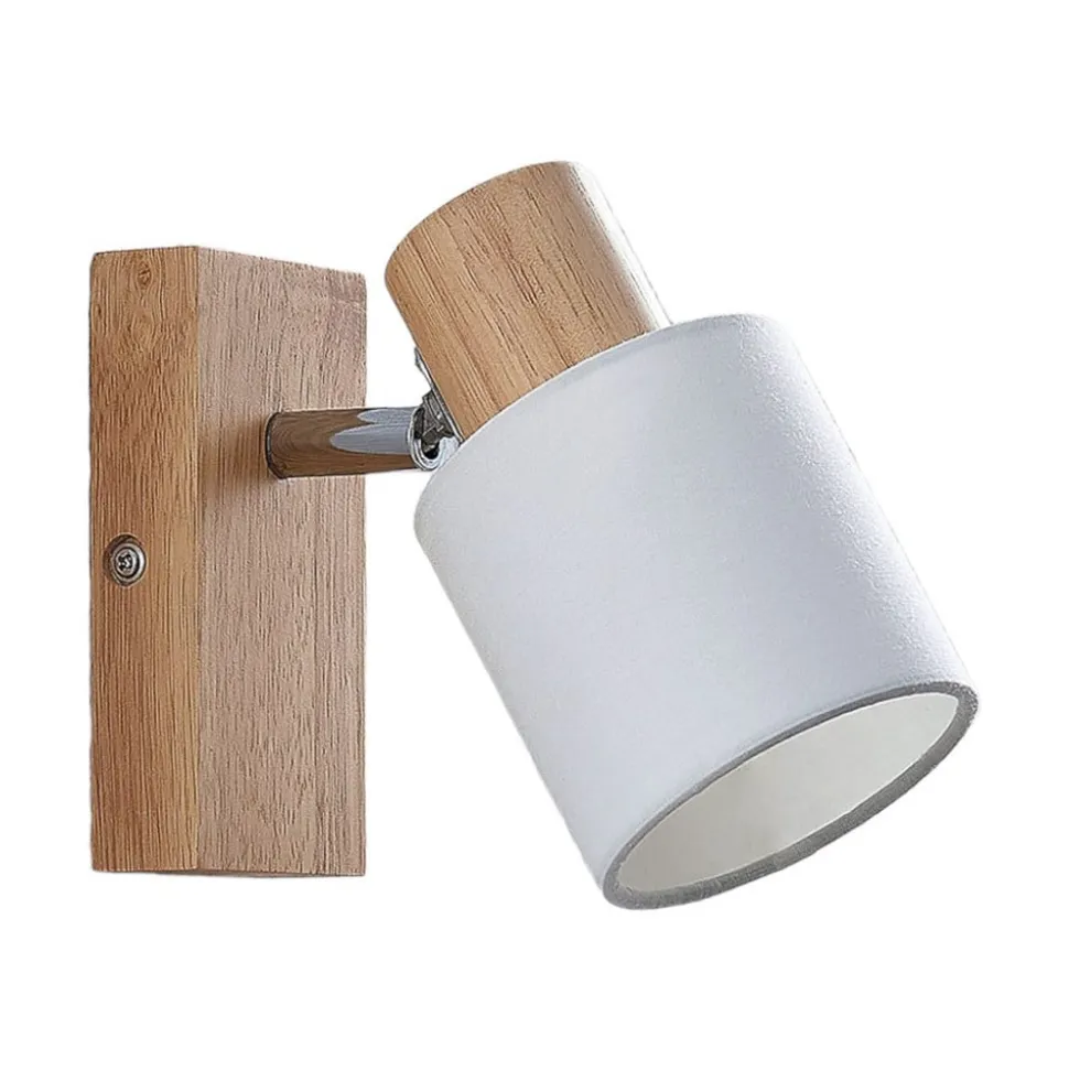 Lindby Spot Wanessa, hout, wit, E14, 14 cm, verstelbaar
