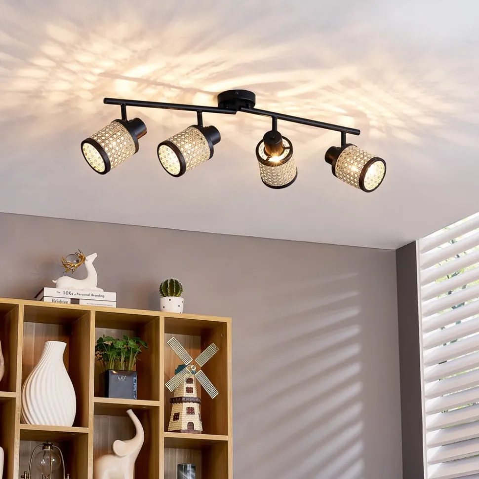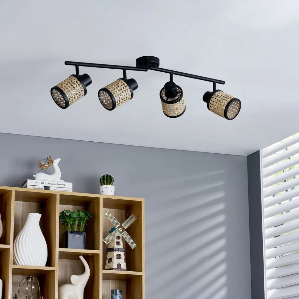 Lindby Spot Yaelle, 76 cm, 4-lamps, rotan, zwart, E27