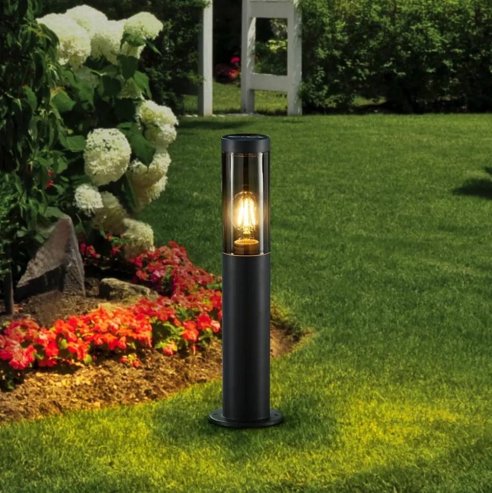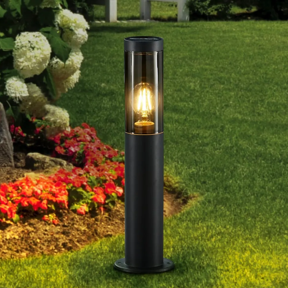 Eenvoudige sokkellamp Statius met zwarte diffuser Perfect voor in de tuin of op de oprit – de sokkellamp Statius. Het genereert aantrekkelijke verlichting voor buiten en integreert perfect in de sfeer voor de voordeur met zijn eenvoudige ontwerp. Statius is gemaakt van ijzer en heeft een zwarte diffuser waarachter een E27 lamp geplaatst kan worden. Indien gewenst kan ze gecombineerd worden met andere lampen om een harmonieuze totaalindruk te creëren.