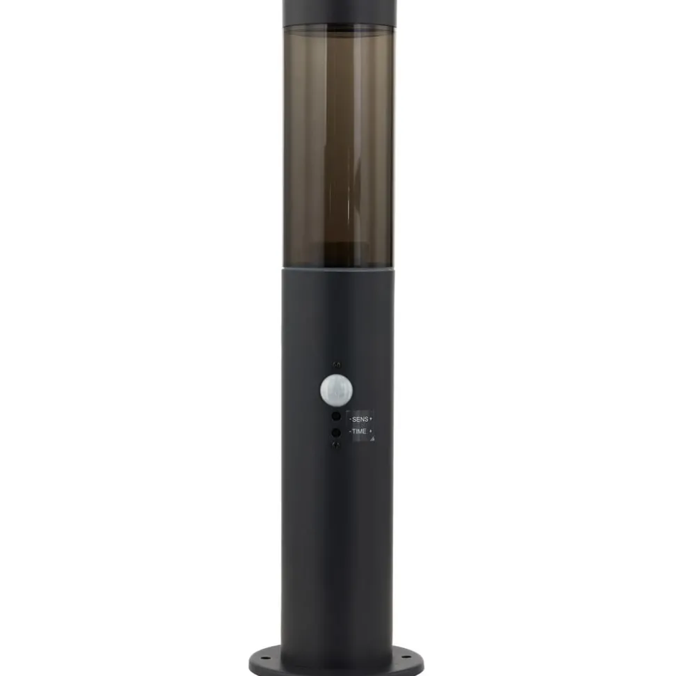 Antracietkleurige Statius sokkellamp voor buiten met praktische bewegingsmelder De Statius sokkellamp heeft een eenvoudig karakter, want hij heeft een antracietkleur en een minimalistisch ontwerp. Hij is gemaakt van ijzer en heeft een donkere diffuser. Achter deze diffuser kan een E27 lamp worden geplaatst, waardoor de lichtkleur kan worden aangepast aan individuele behoeften. Statius heeft ook een sensor die de verlichting regelt op basis van beweging – Detectiehoek sensor 1 – 8 m