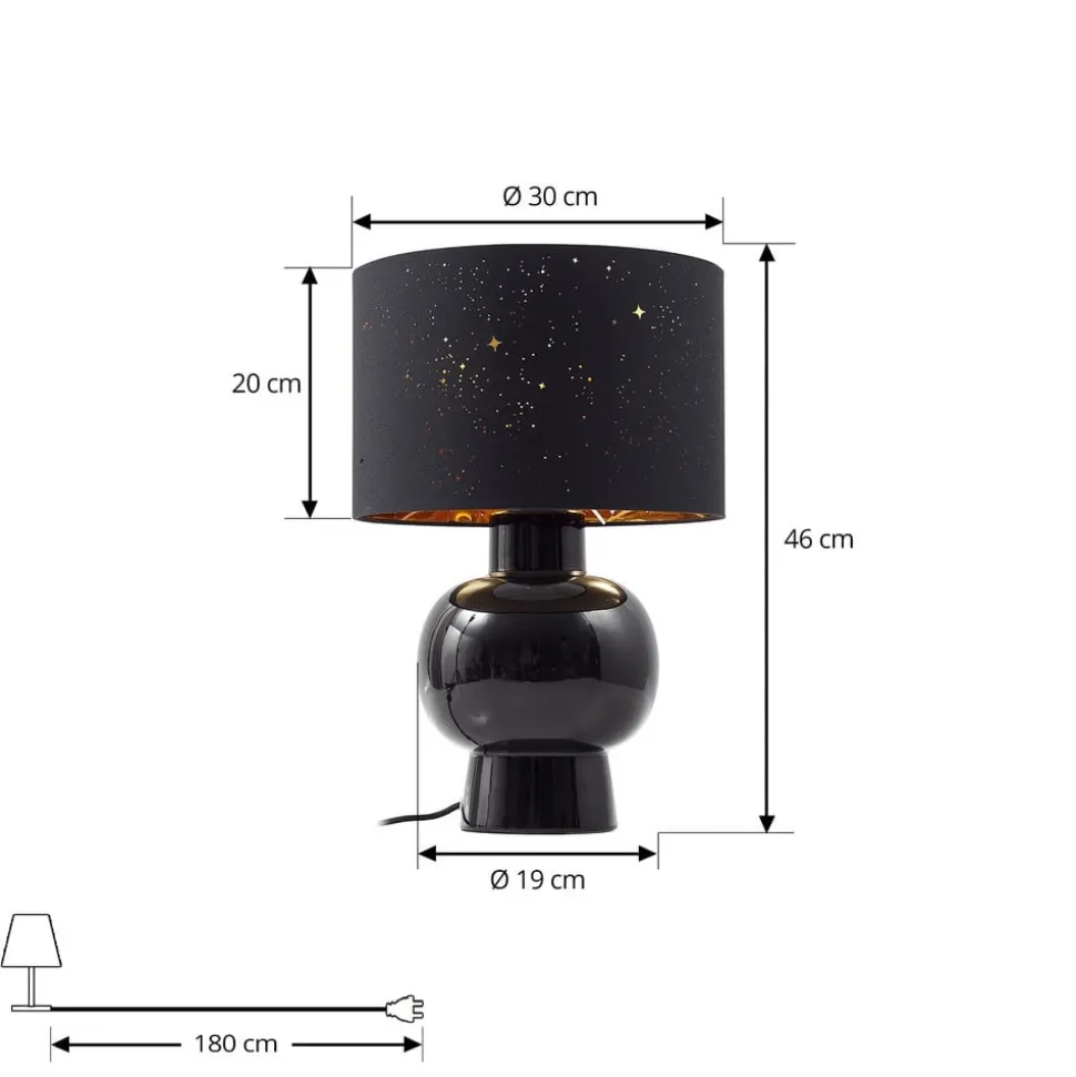 - Kap – Ø 30 cm, hoogte 20 cm; basis – Ø 19 cm, hoogte 25,5 cm; snoerlengte 180 cm