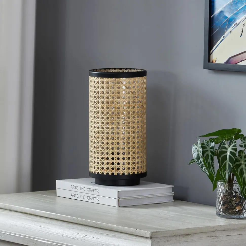 Lindby tafellamp Yaelle, 30 cm hoog, rotan, zwart, E27