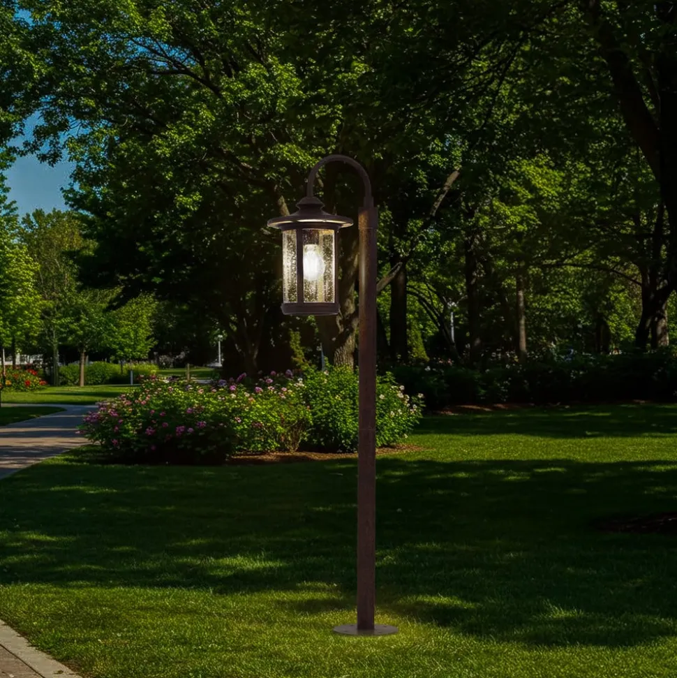 Lindby tuinpadverlichting Zayn, roestkleurig, glas, hoogte 109 cm, IP65