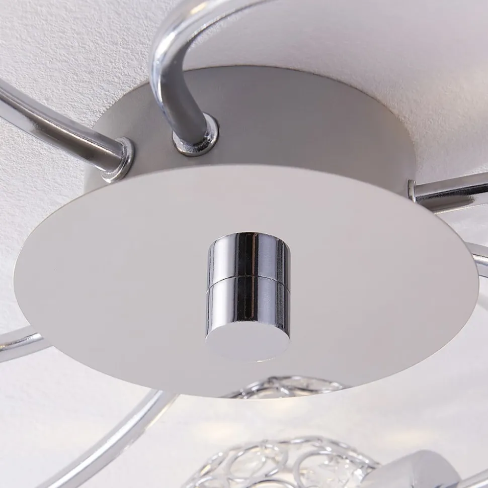 Lindby Tyron plafondlamp, Ø 65 cm, chroom, glas, metaal
